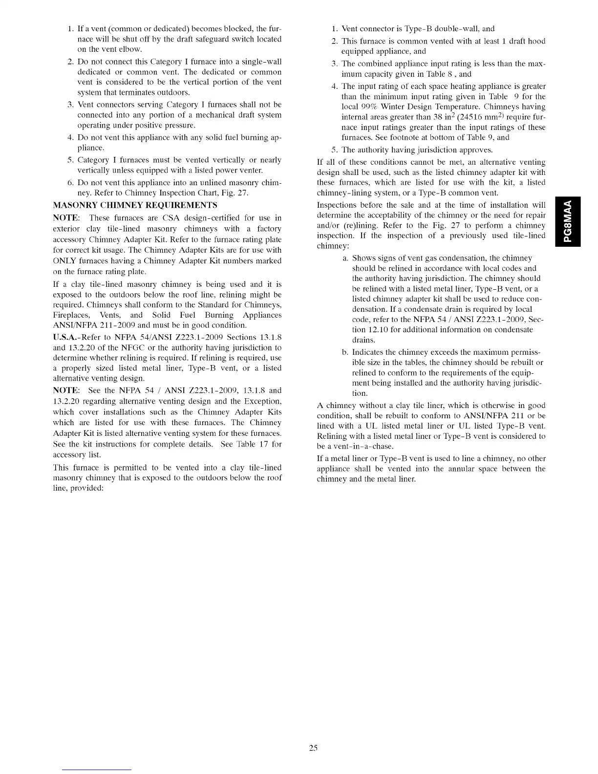 code, refer to the NFPA 54 / ANSI Z223.1-2009, Sec-