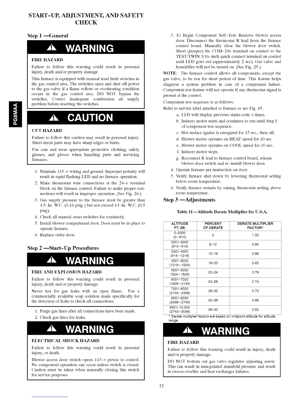 START-UP, ADJUSTMENT, AND SAFETY