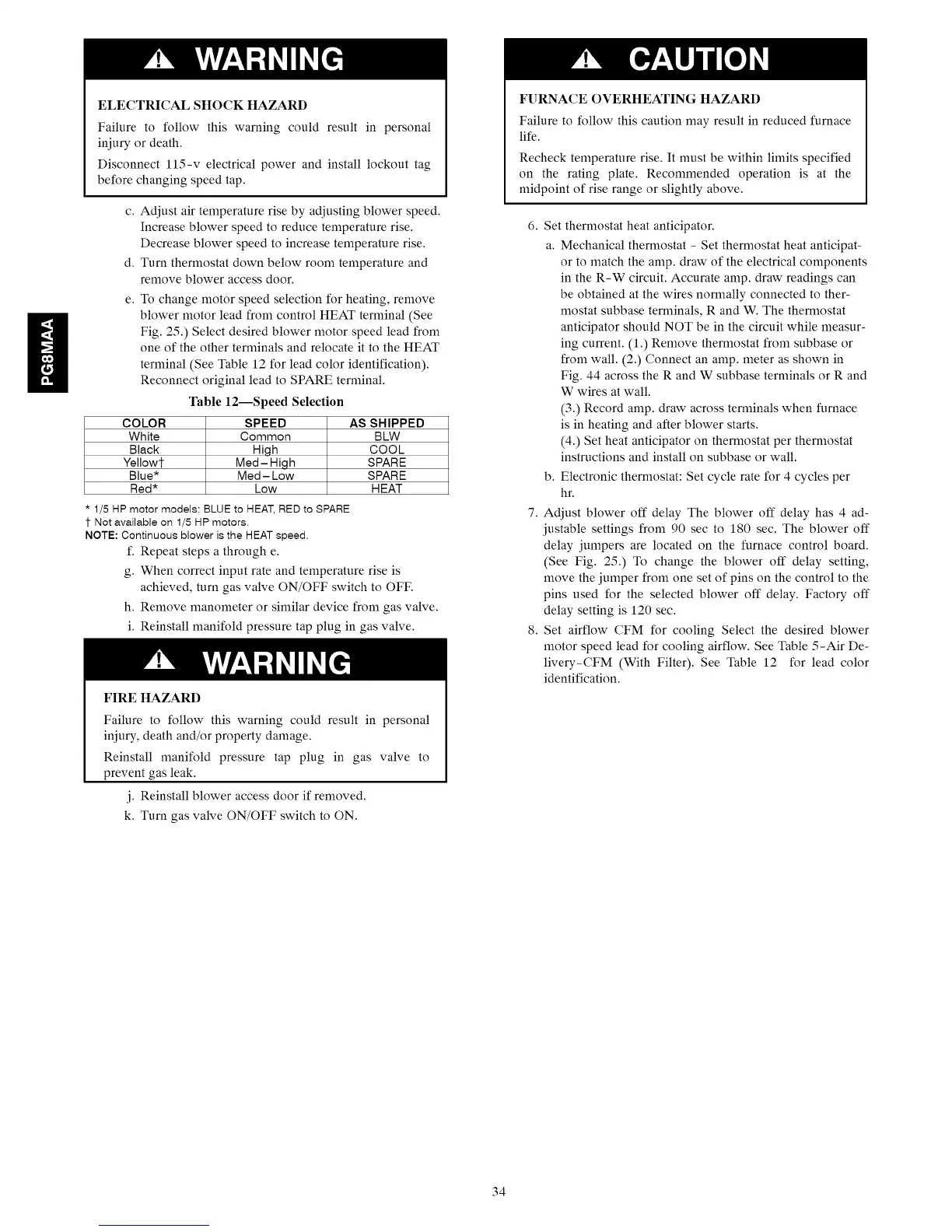 motor speed lead for cooling airflow. See Table 5-Air De-