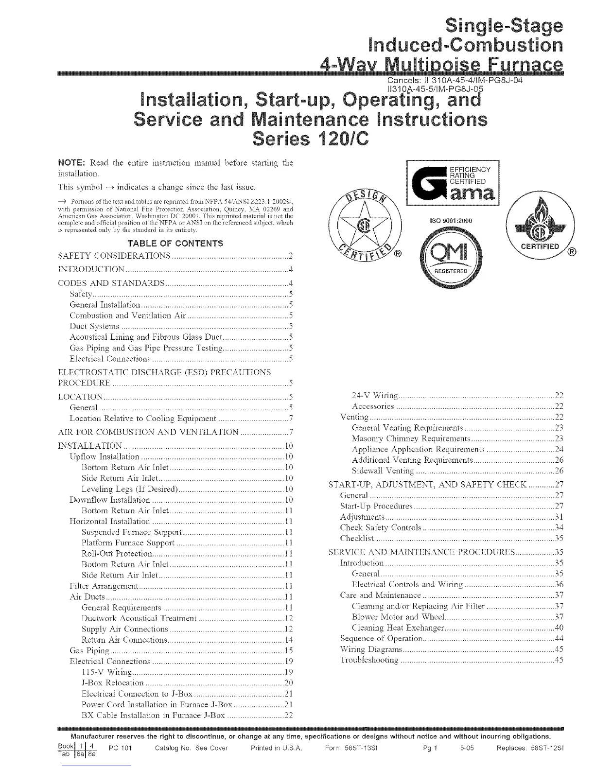 PC 101 Catalog No See Cover Printed in USA Form 58S%13SI Pg 1 5-05 Replaces: 58S%12SI
