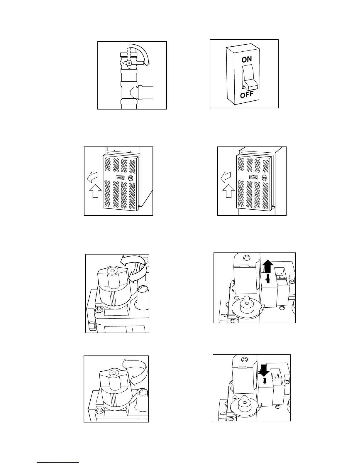 switch on the gas valve to the OFF position and wait 5 minutes. Then smell for gas, including near the floor. If you smell gas, stop! Follow