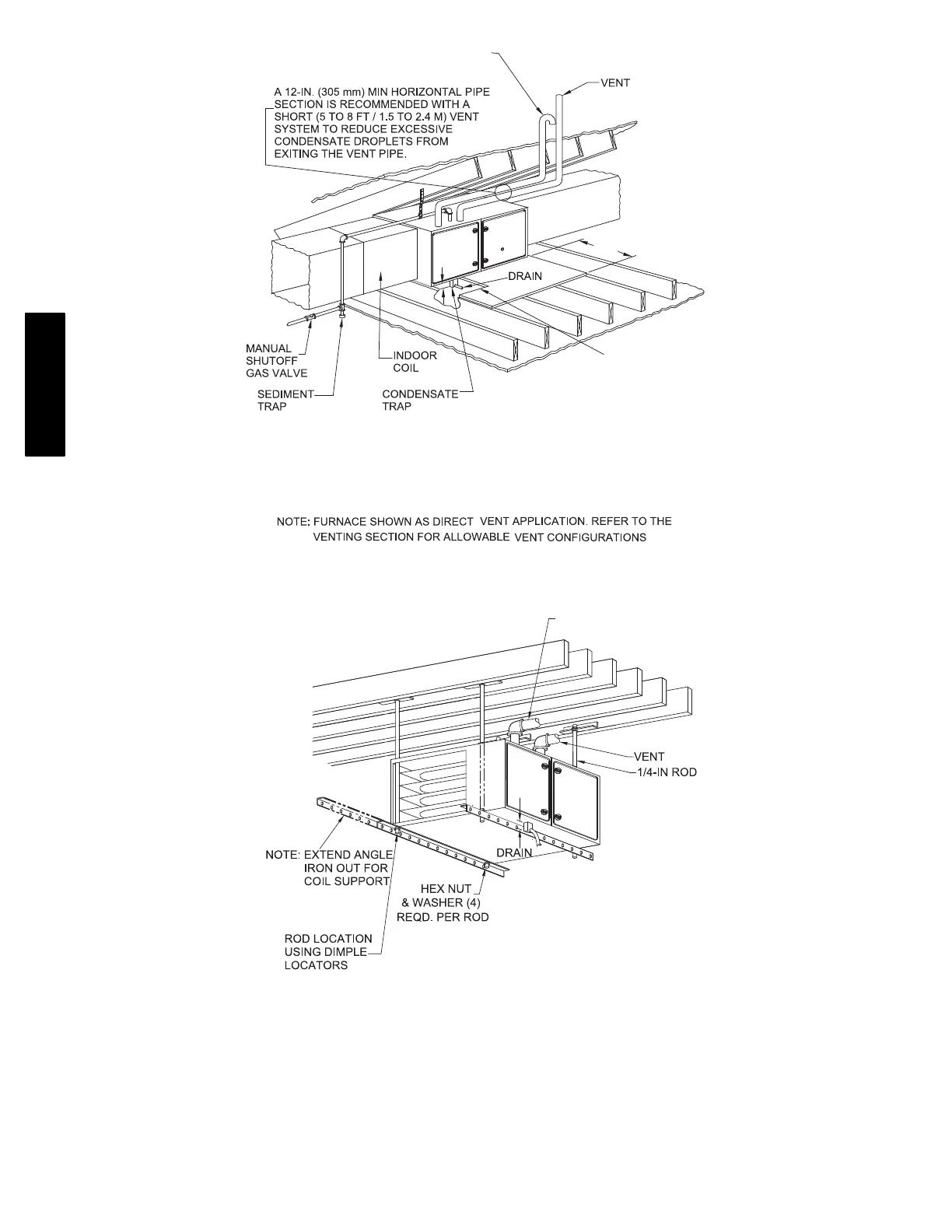 NOTE: Local codes may require a drain pan and condensate trap when a condensing furnace is installed over a finished ceiling.