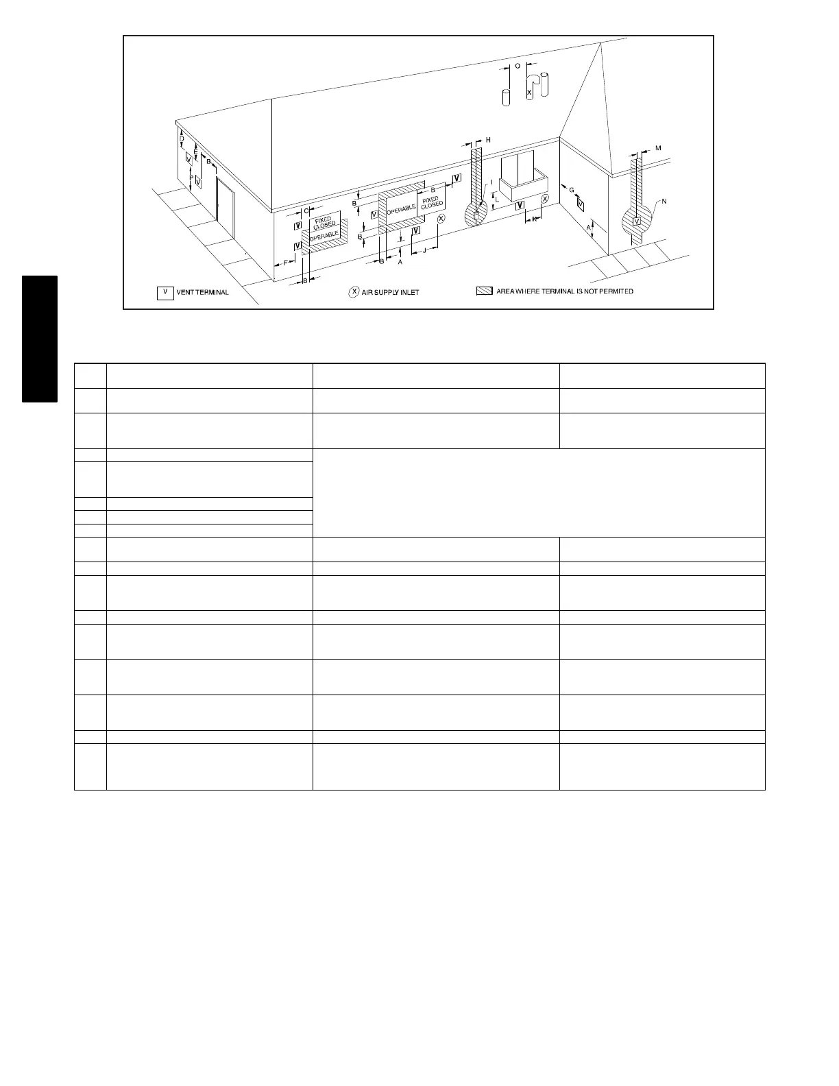 8 Avoid venting under a deck or large overhang. Recirculation could occur and cause performance or system problems. Ice buildup may occur.