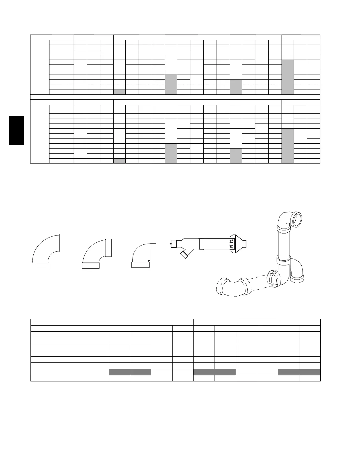 5. Assume the two 45_ elbows equal one 90_ elbow. Wide radius elbows are desirable and may be required in some cases.