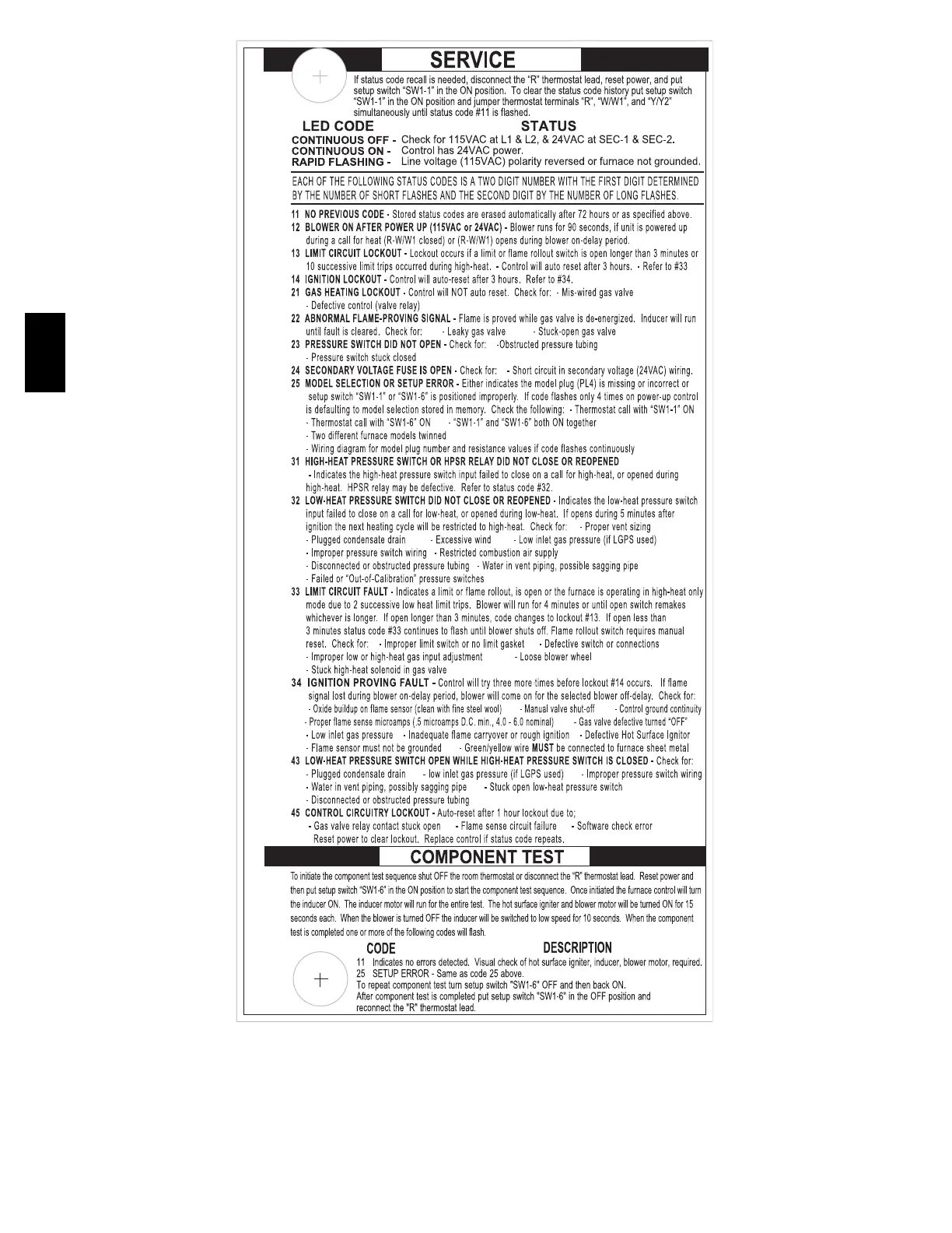 Payne PG96VAT - SERVICE; COMPONENT TEST