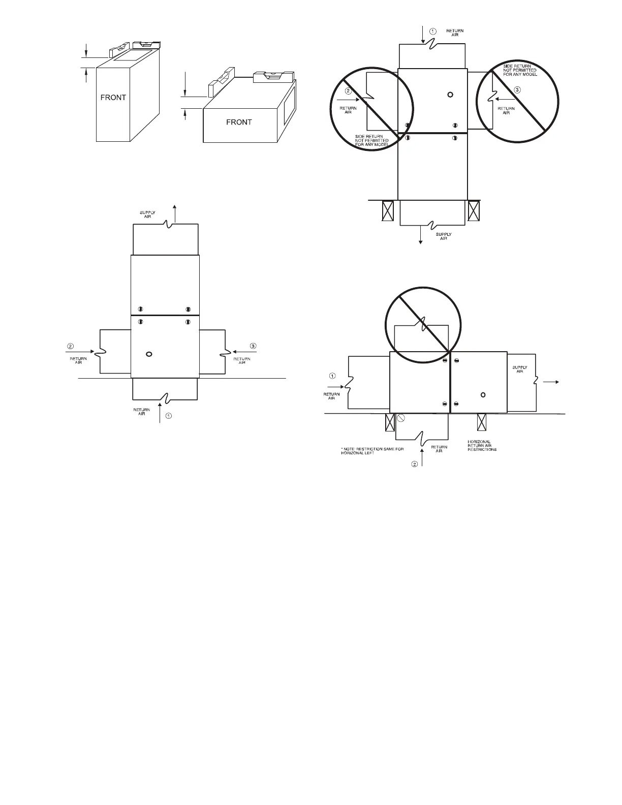 Fig. 26 -- Upflow Return Air Configurations and Restrictions