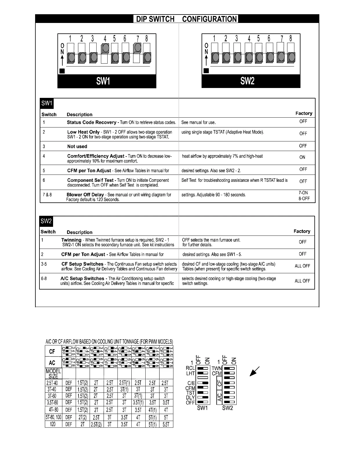 Fig. 66 -- Airflow Selection (based on 350 CFM/TON) for A/C (SW2-- 6, 7, 8) and *CF (SW2-- 3, 4, 5)
