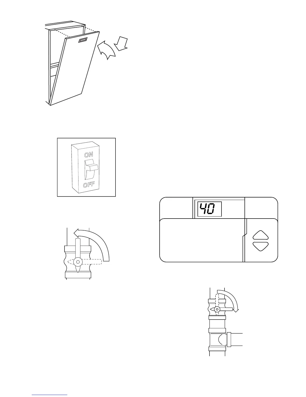9. Open the external manual gas valve. (See Fig. 14.)