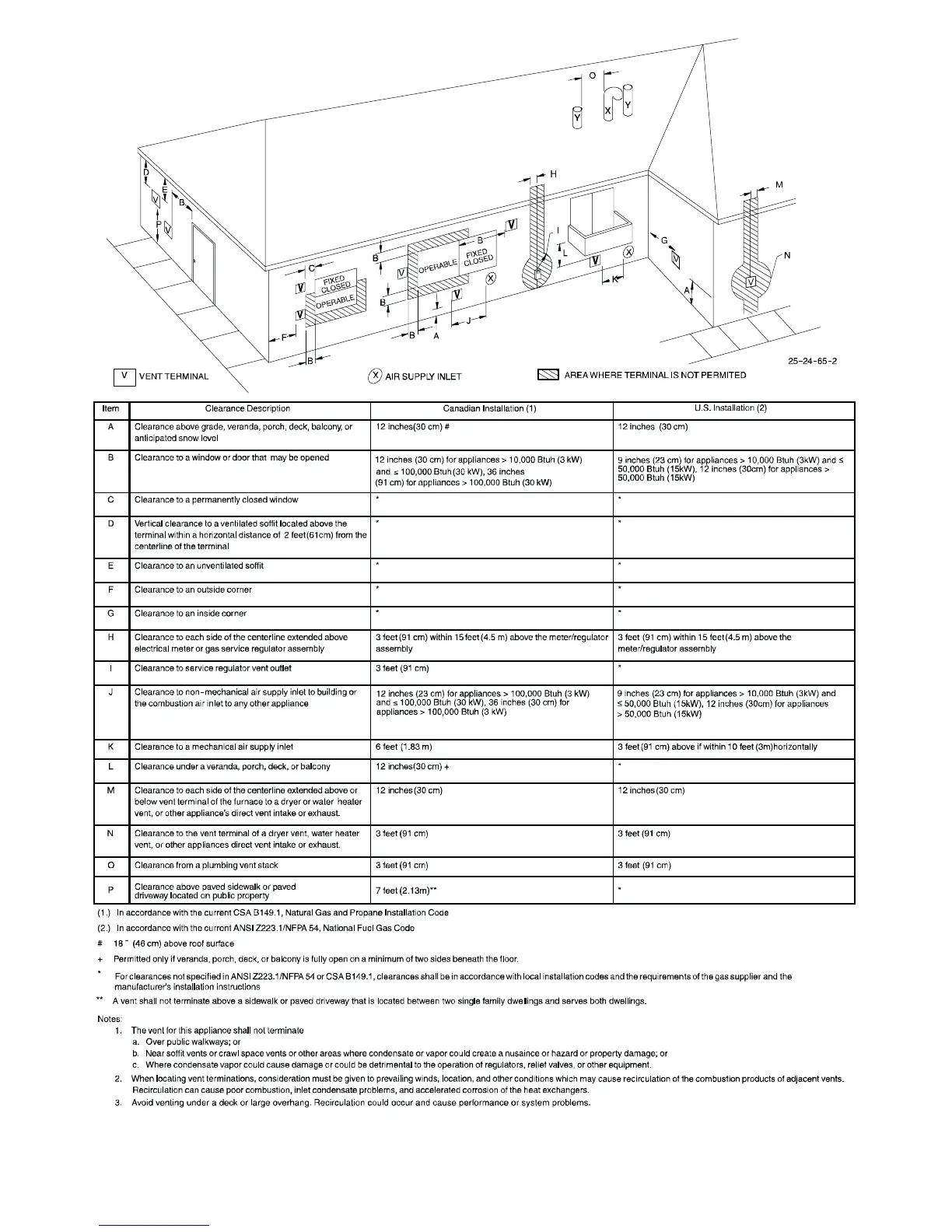Payne PG9MXA - Direct Vent Termination Clearances; Direct Vent Termination Clearance Table