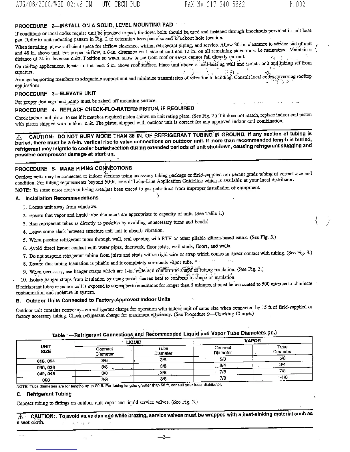 Payne PH10JA - Installation Procedures; Mounting Pad and Clearance Requirements; Unit Elevation and Piston Check; Refrigerant Piping Guidelines