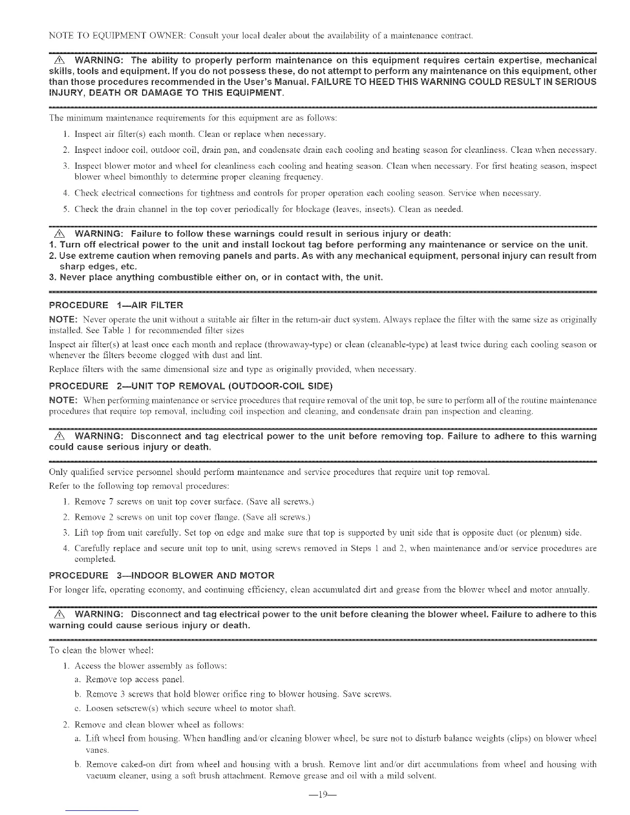 Only qualified service personnel should per%tin maintenance and service procedures that require unit top removal