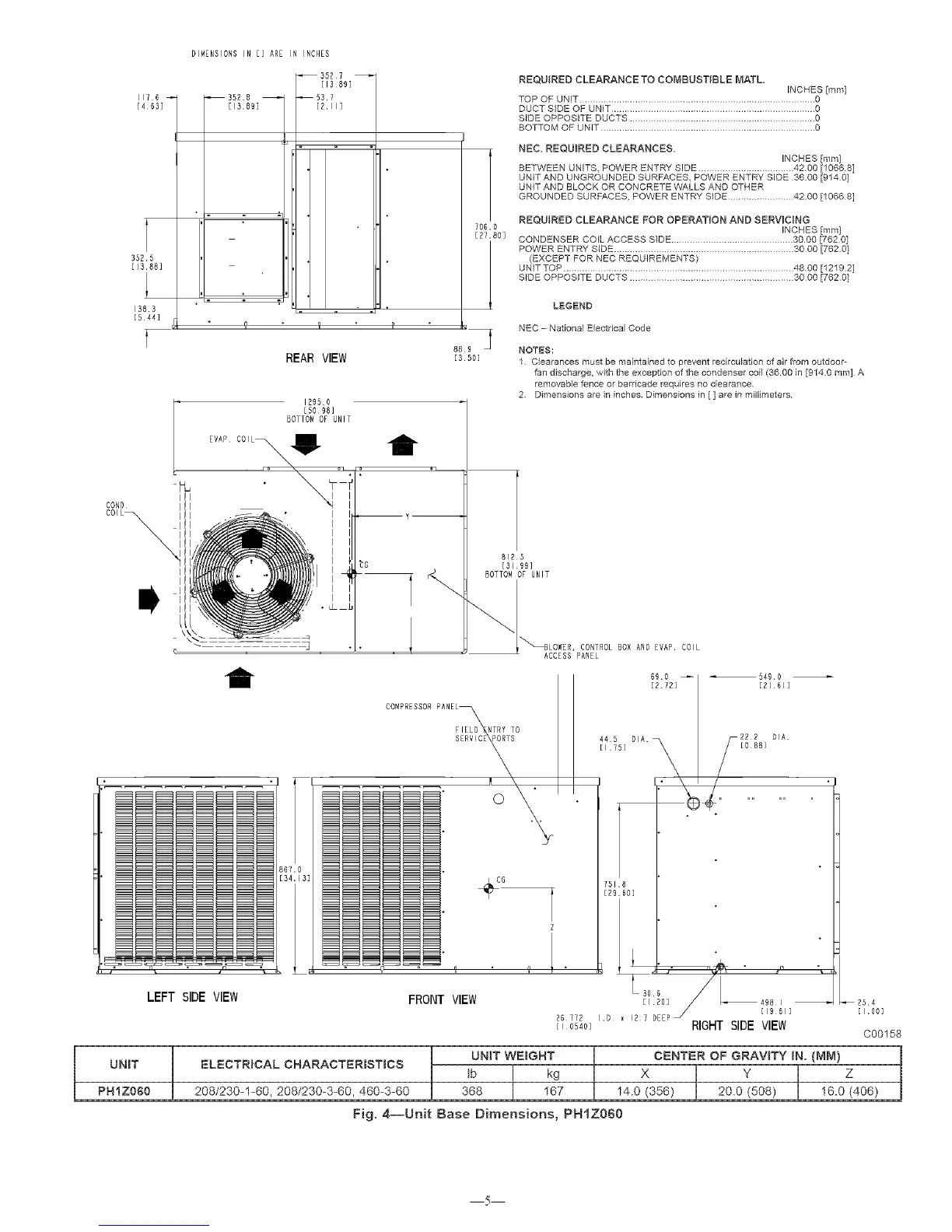 Fig. 4--Unit Base Dimensions, PHIZ060
