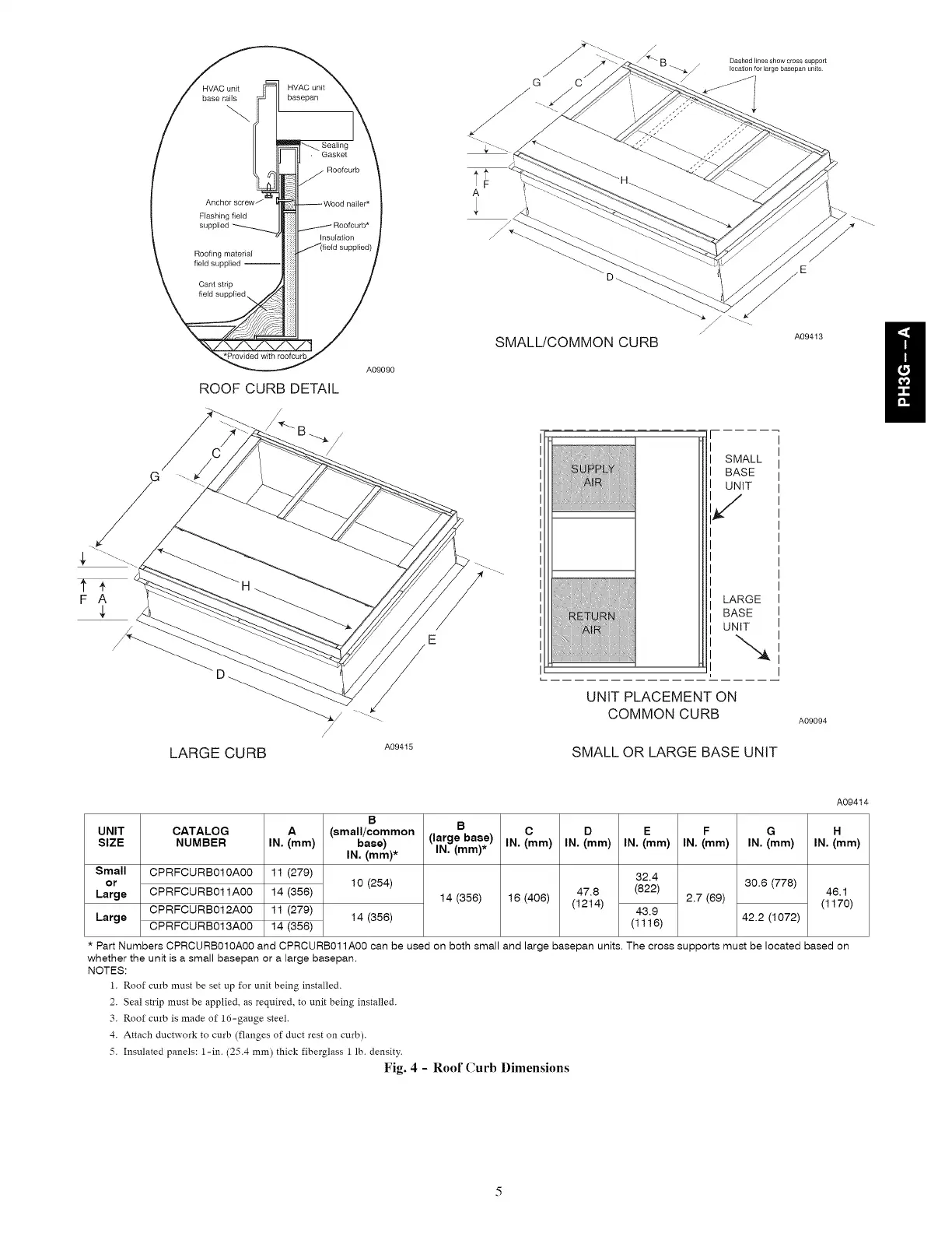 * Part Numbers CPRCURB010A00 and CPRCURB011A00 can be used on both small and large basepan units. The cross supports must be located based on