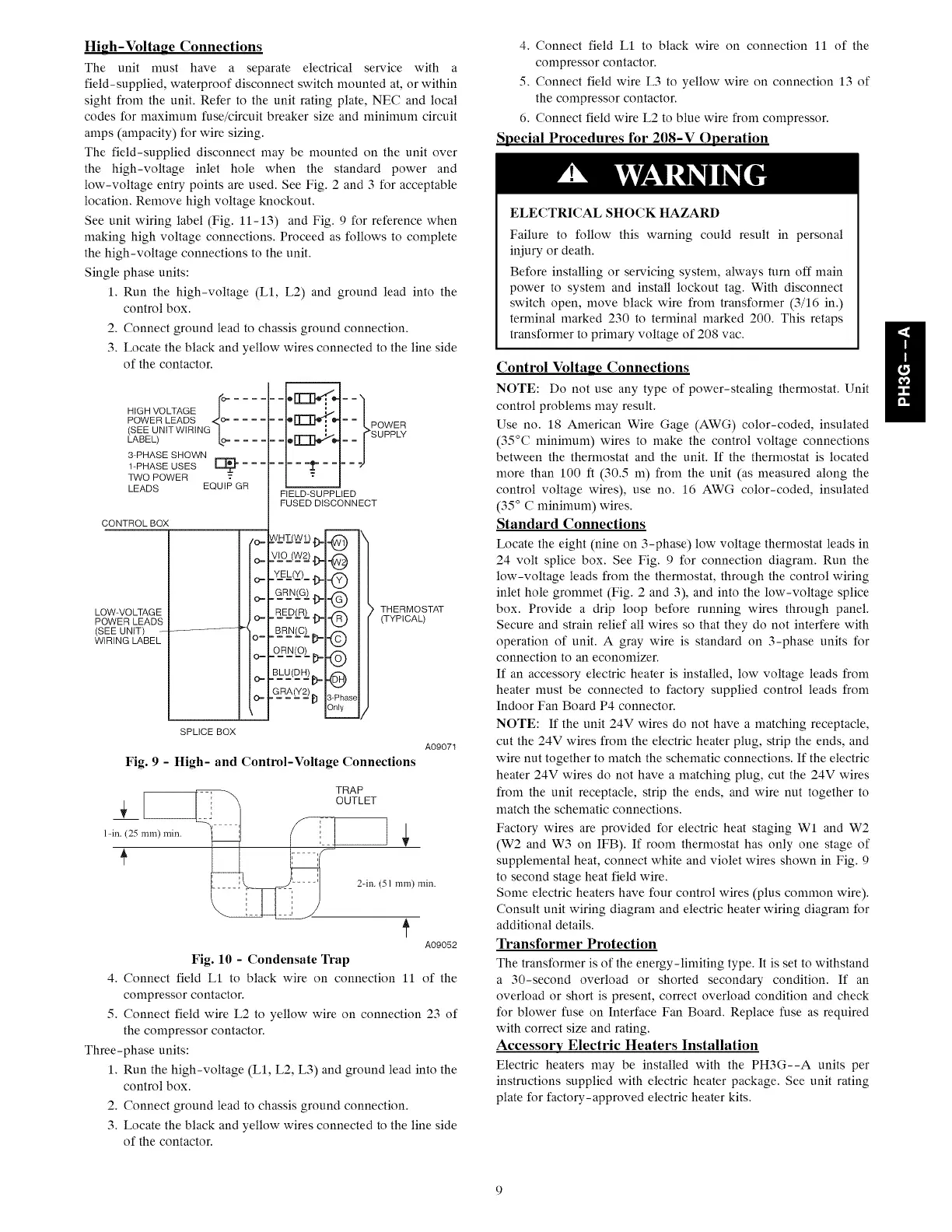 See unit wiring label (Fig. 11-13) and Fig. 9 for reference when
