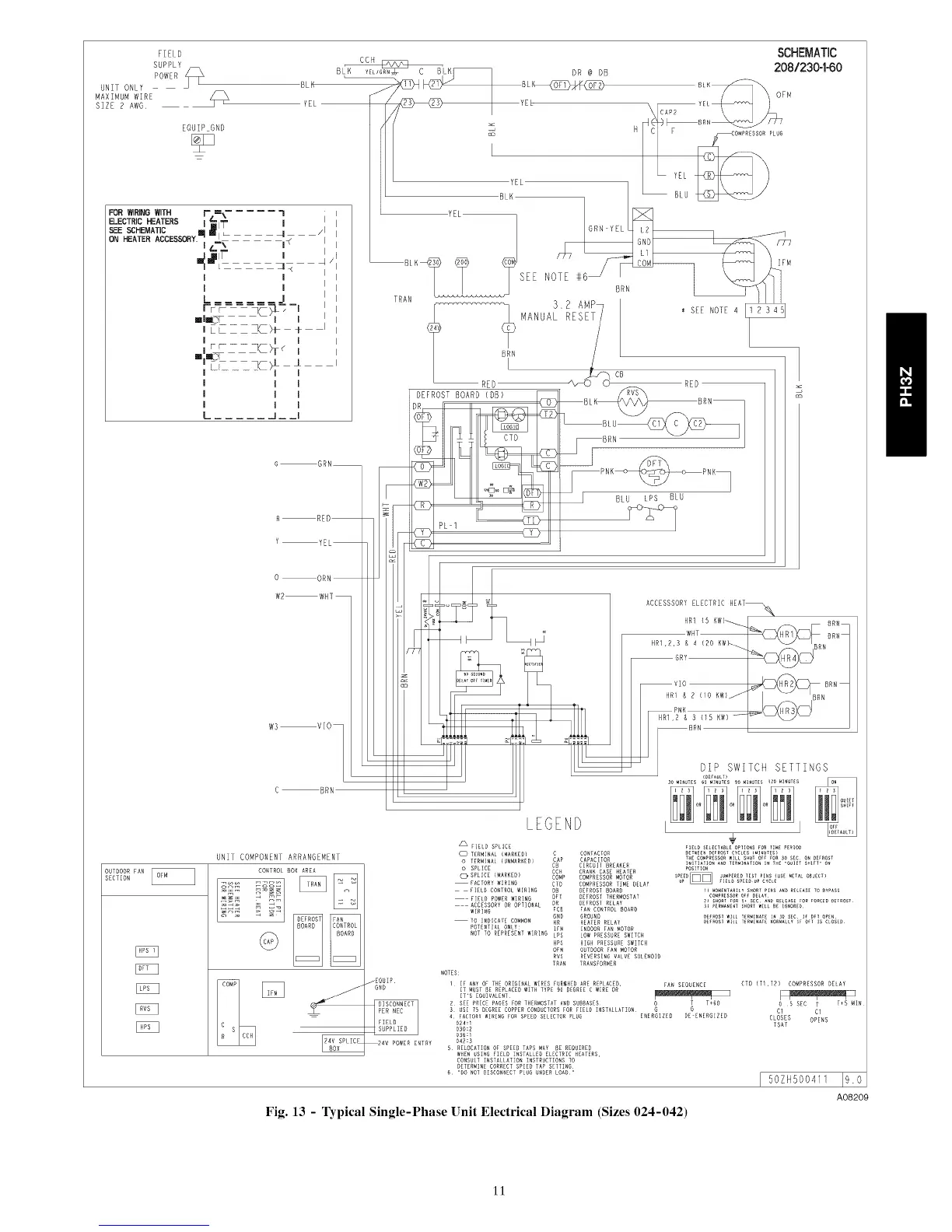 Fig. 13 - Typical Single-Phase []nit Electrical Diagram (Sizes 024-042)