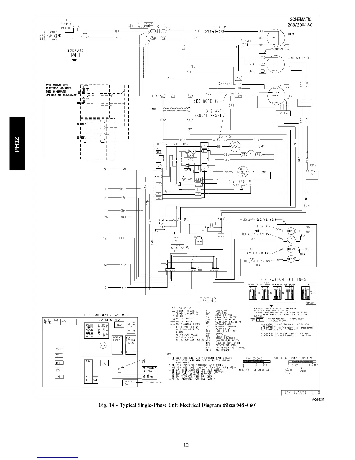 Fig. 14 - Typical Single-Phase Unit Electrical Diagram (Sizes 048-060)