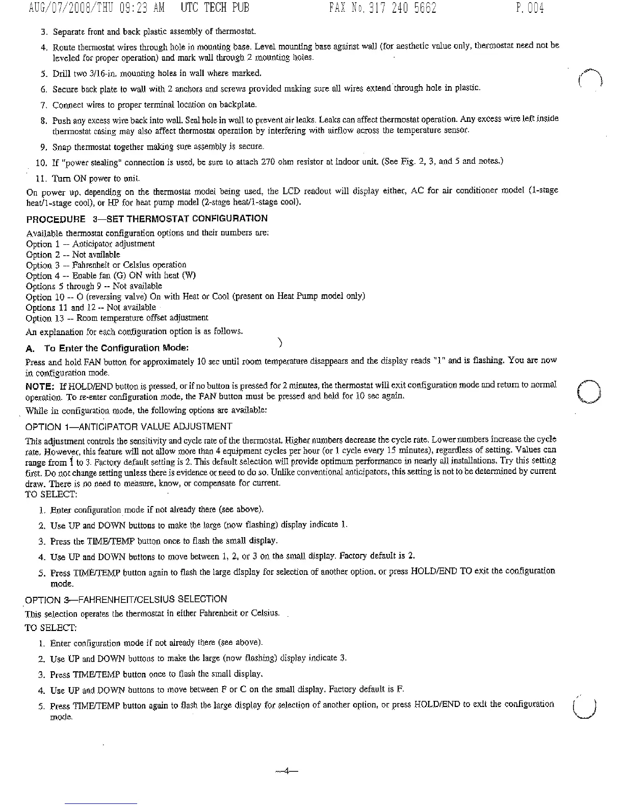 Payne TSTAT - Thermostat Configuration; Anticipator Value Adjustment; Fahrenheit or Celsius Selection