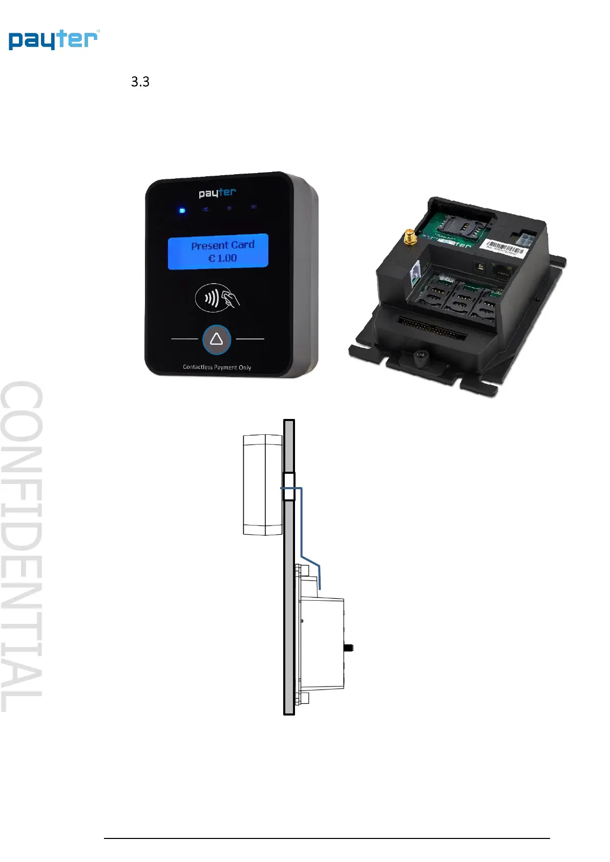 card reader and the communication is split into two parts. The card reader can be mounted on