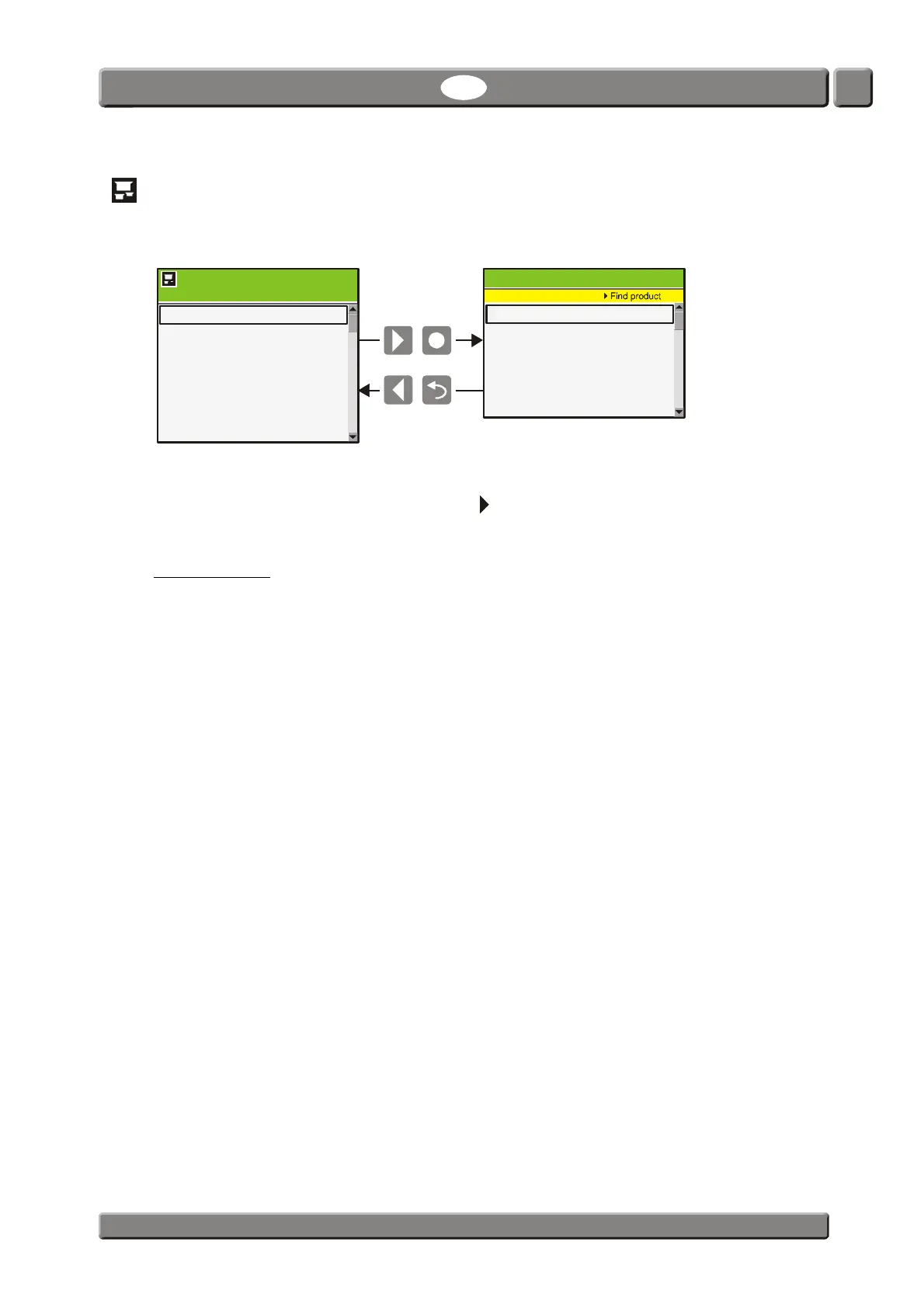 Selecting a function will display all products in the last used order. To find a product by