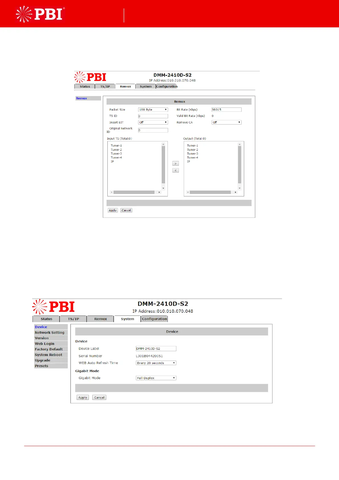 version, and so on. User can implement the alarm switch configuration, network settings, TS/IP