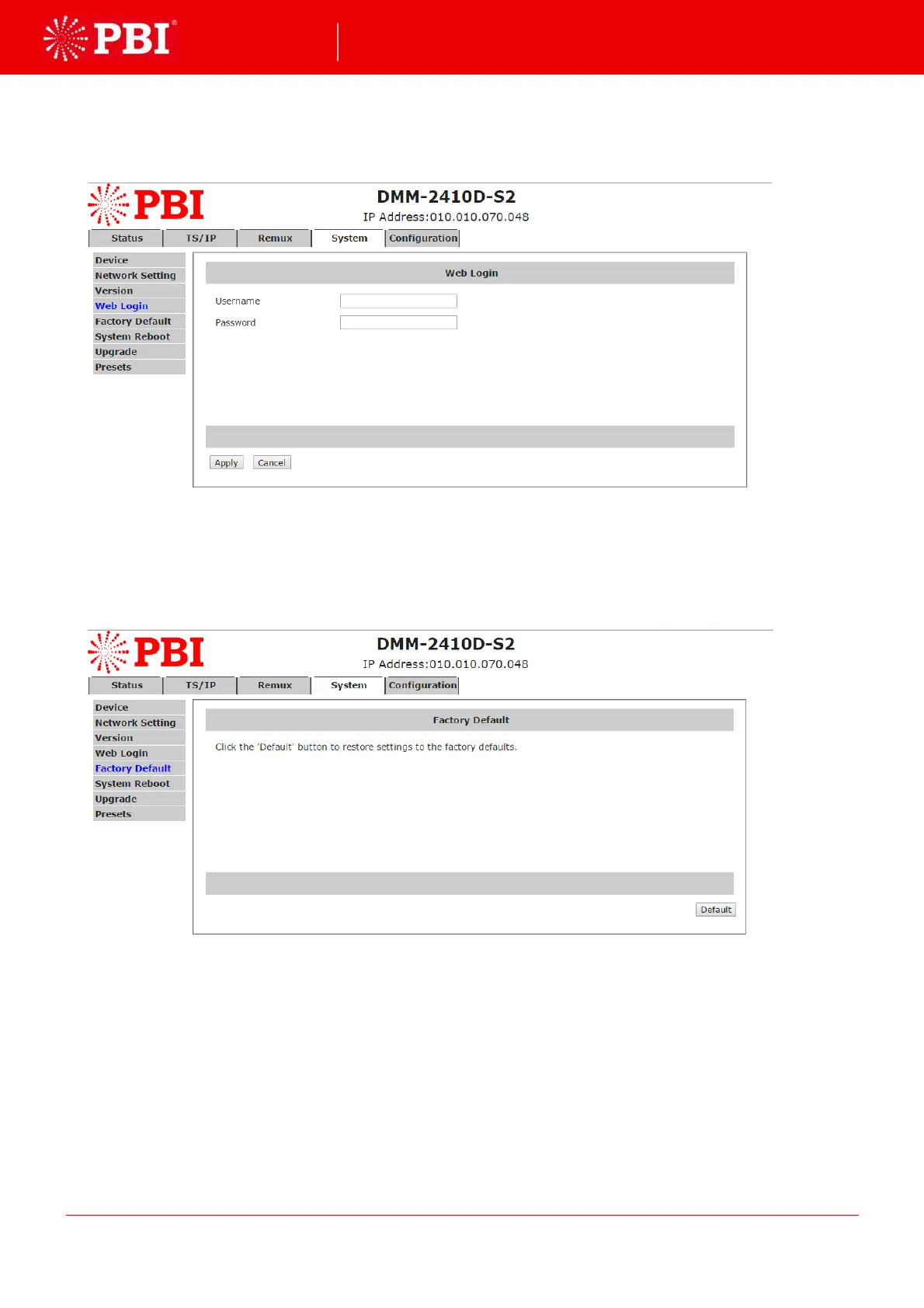 Note: the IP address of the device and the operation mode of the Gigabit board will not be restored.