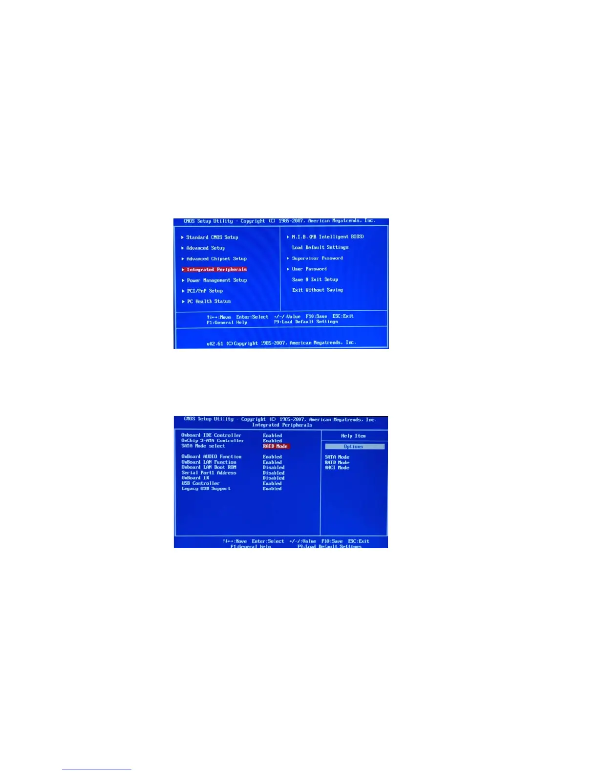 The Integrated Peripherals screen (or a screen similar to it) appears.