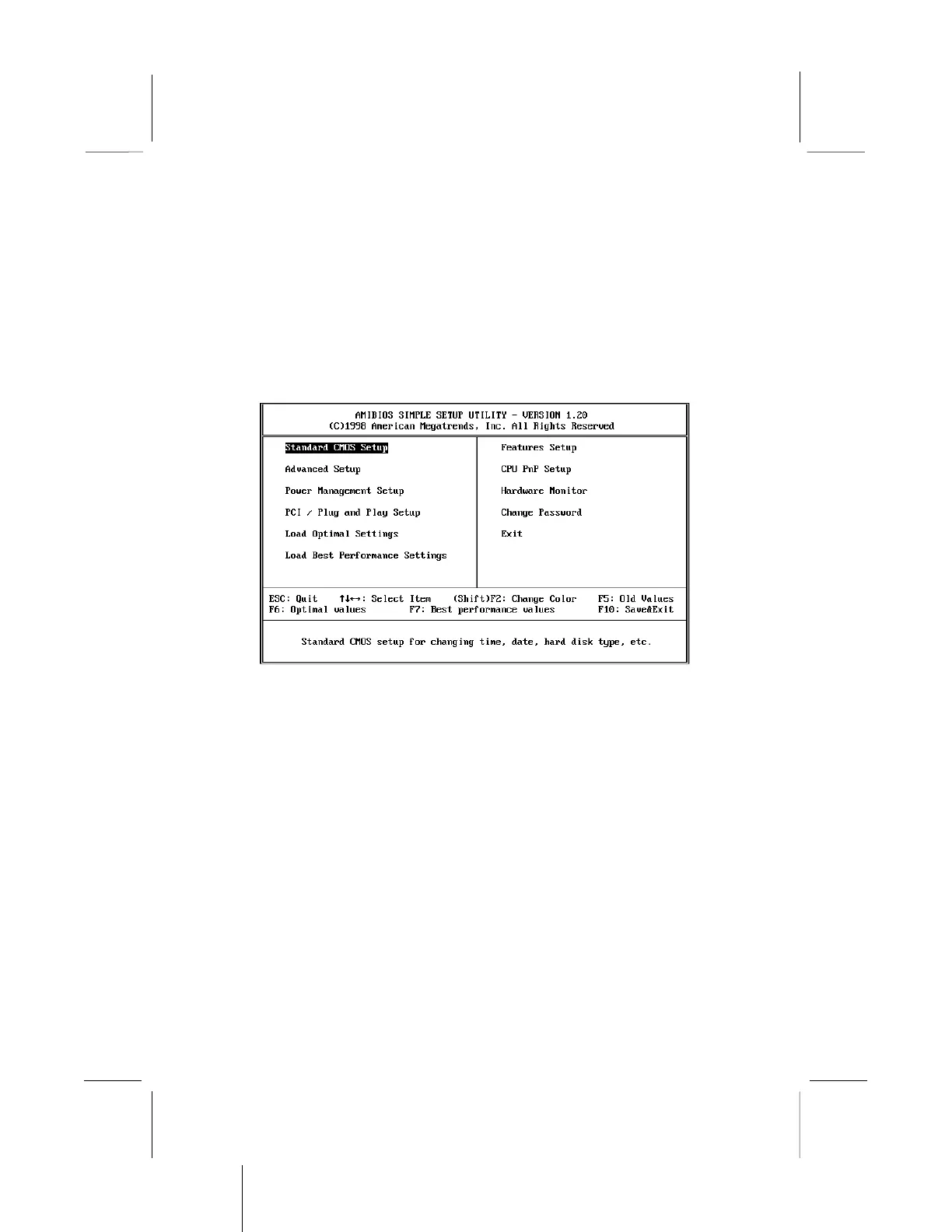 changes to the original values. Press F6 to install the setup utility