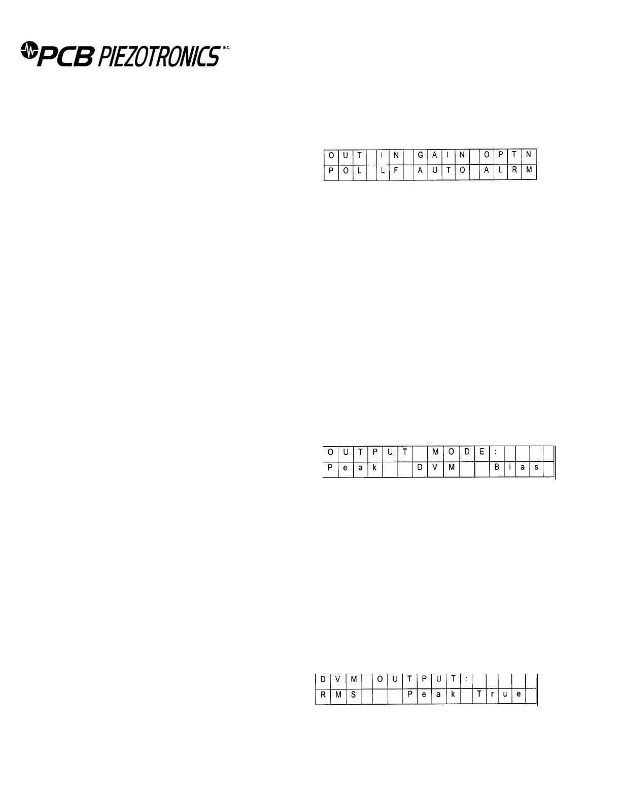 OUT: Output menu. Allows the selection of PEAK HOLD