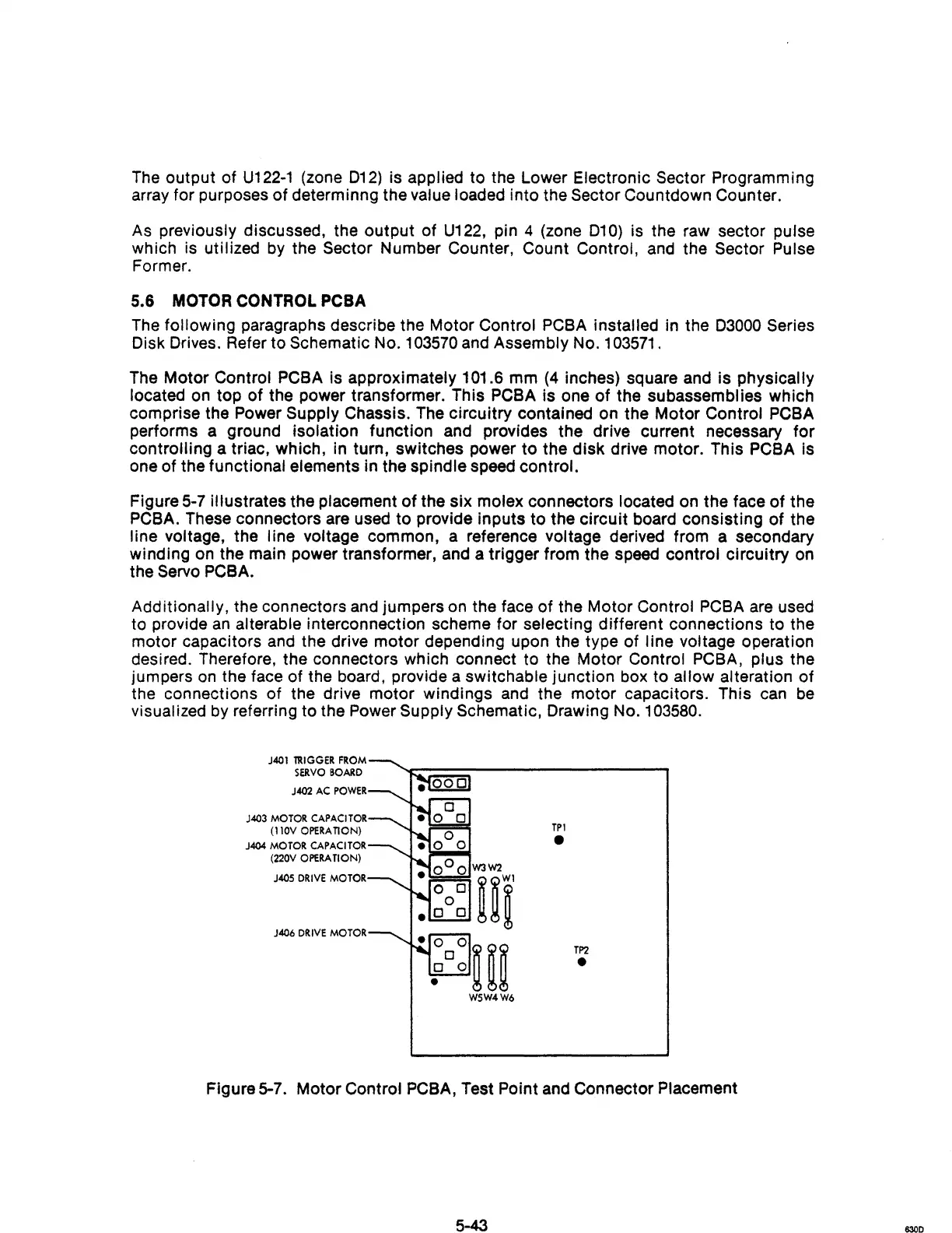 The following paragraphs describe the Motor Control PCBA installed