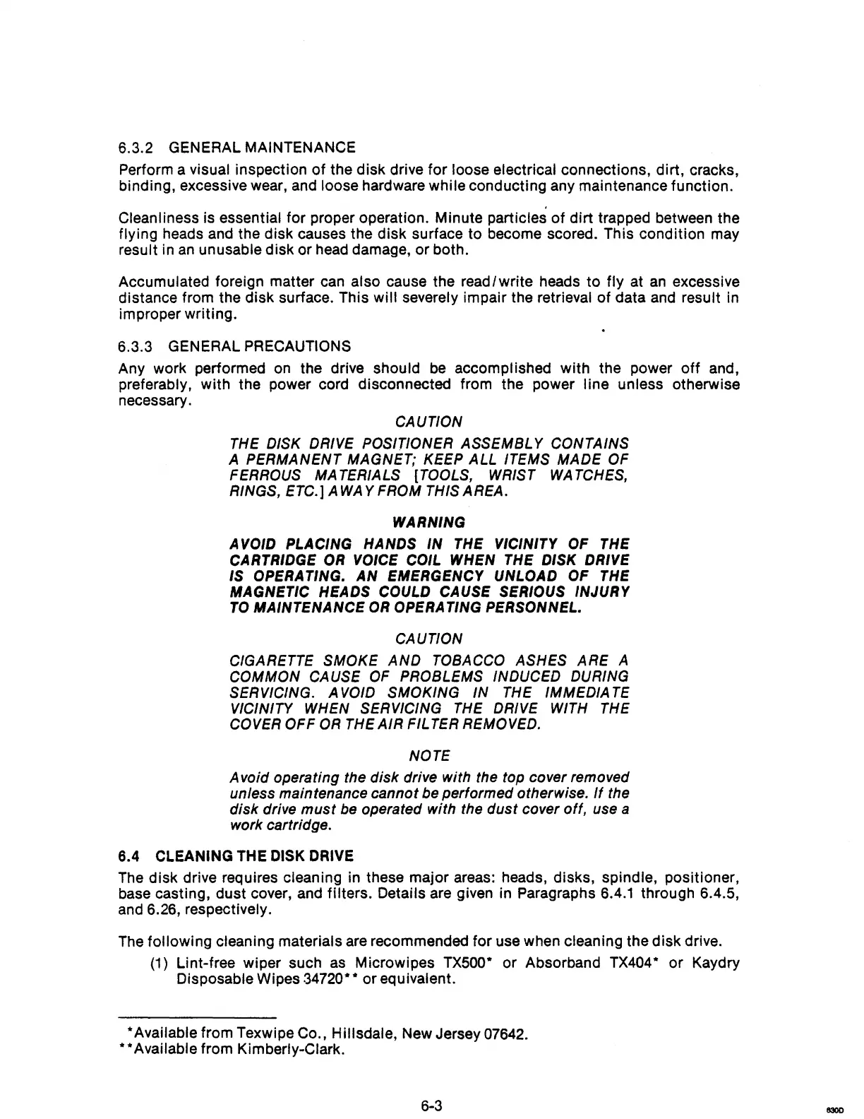 The disk drive requires cleaning in these major areas: heads, disks, spindle, positioner,
