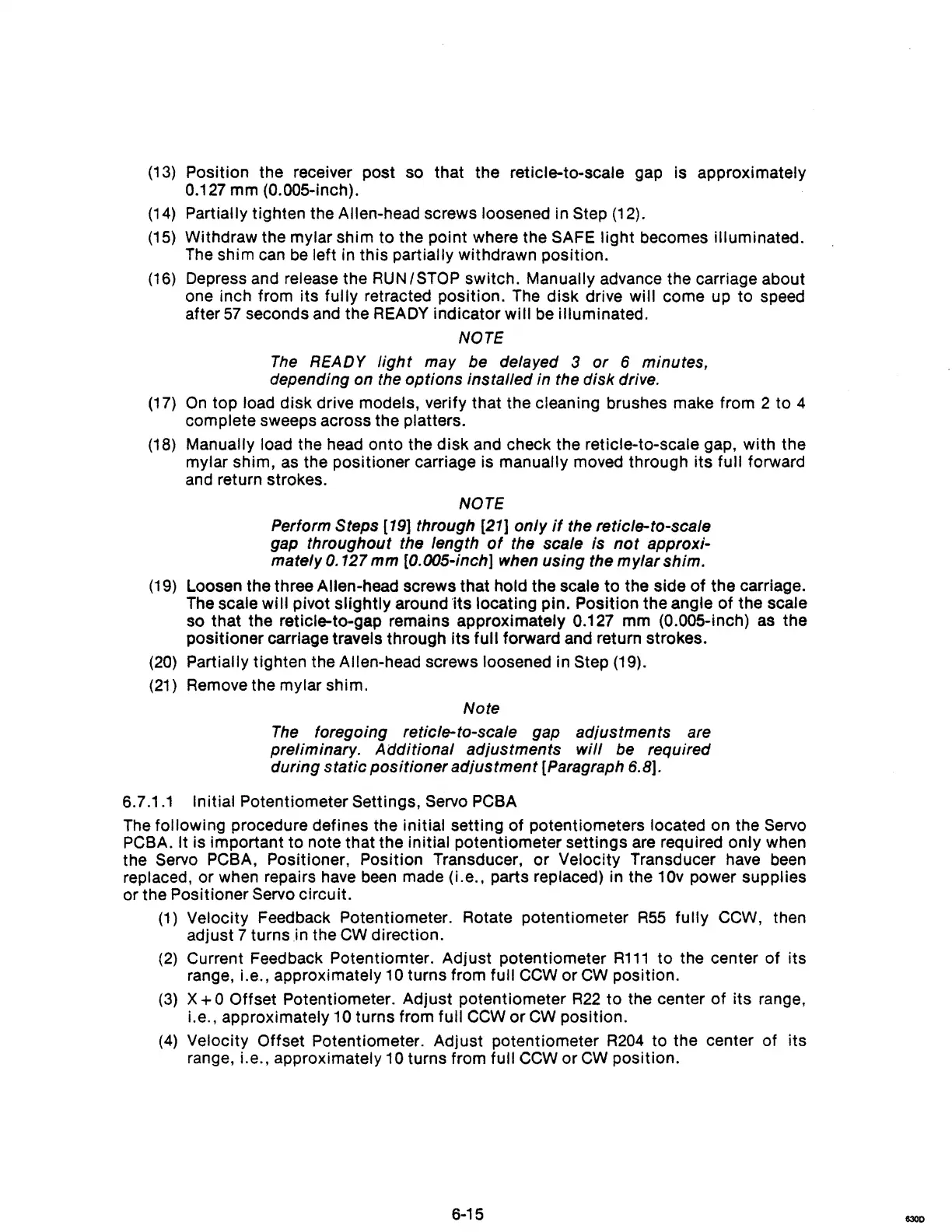 (18) Manually load the head onto the disk and check the reticle-to-scale gap, with the