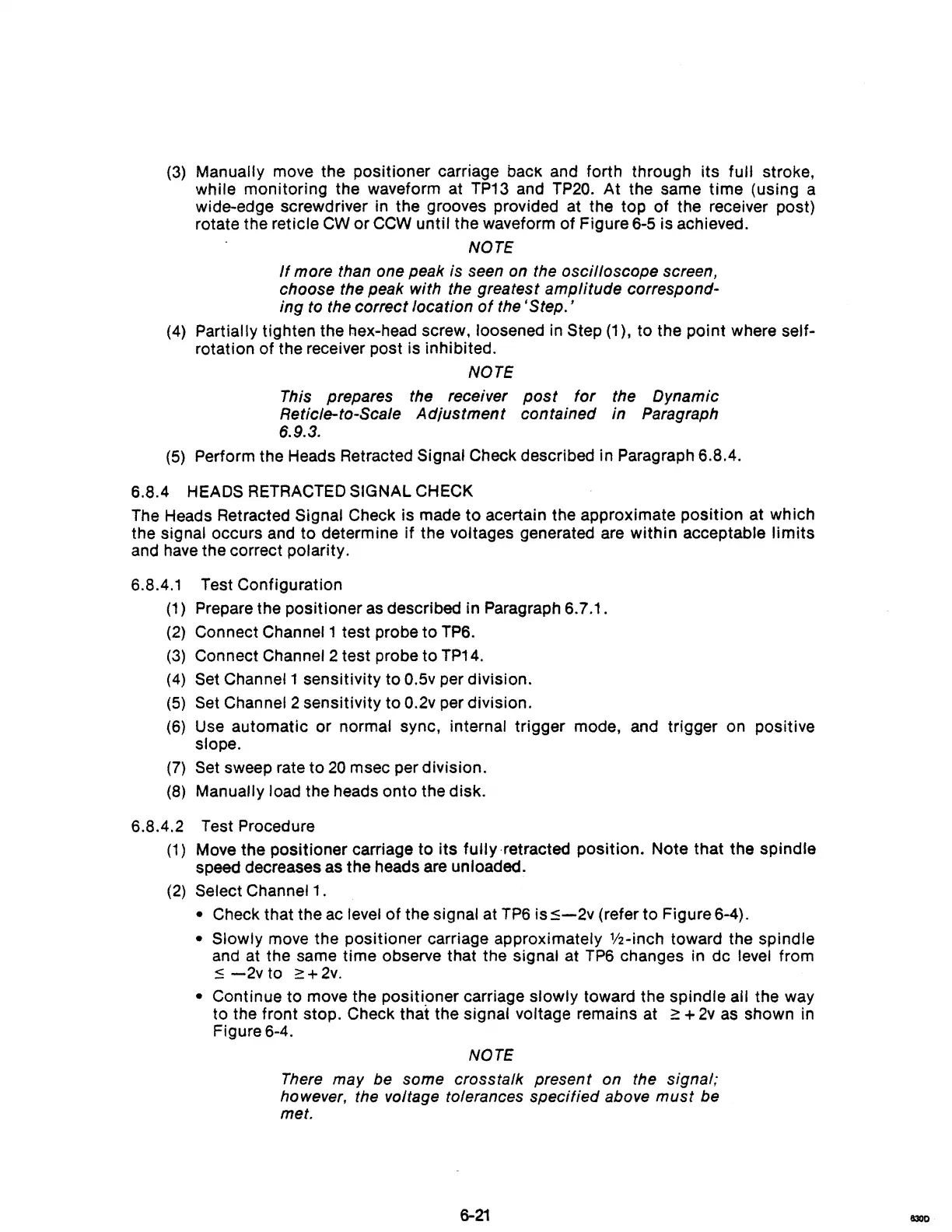 Perform the Heads Retracted Signal Check described in Paragraph 6.8.4.