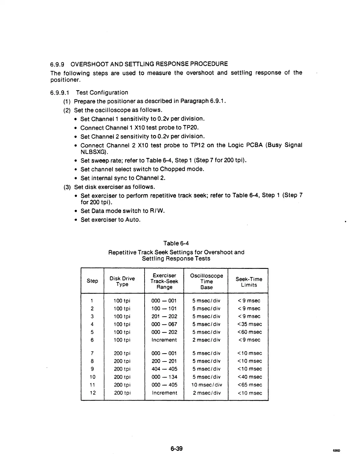 • Set exerciser to perform repetitive track seek; refer to Table 6-4, Step 1 (Step 7