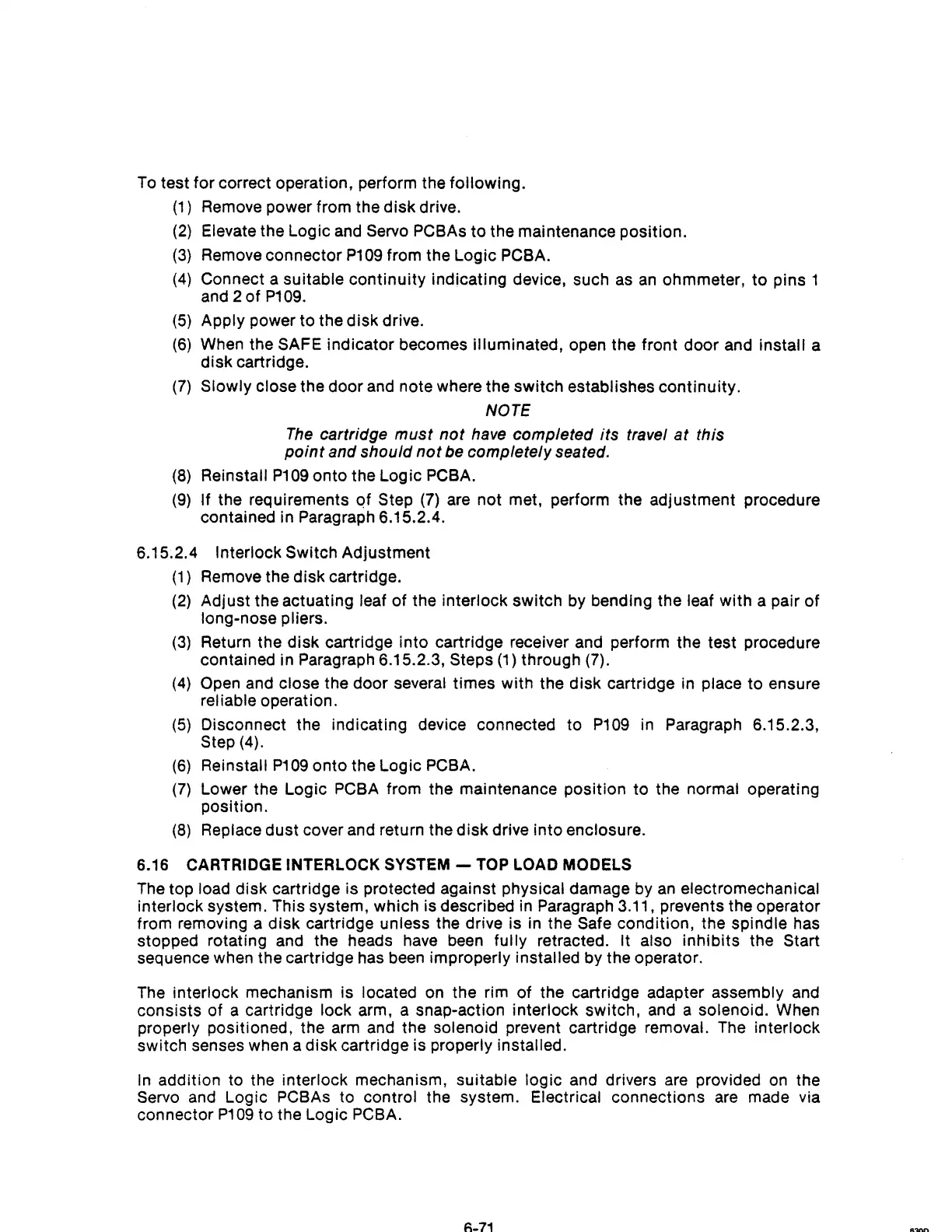 6.16 CARTRIDGE INTERLOCK SYSTEM - TOP LOAD MODELS