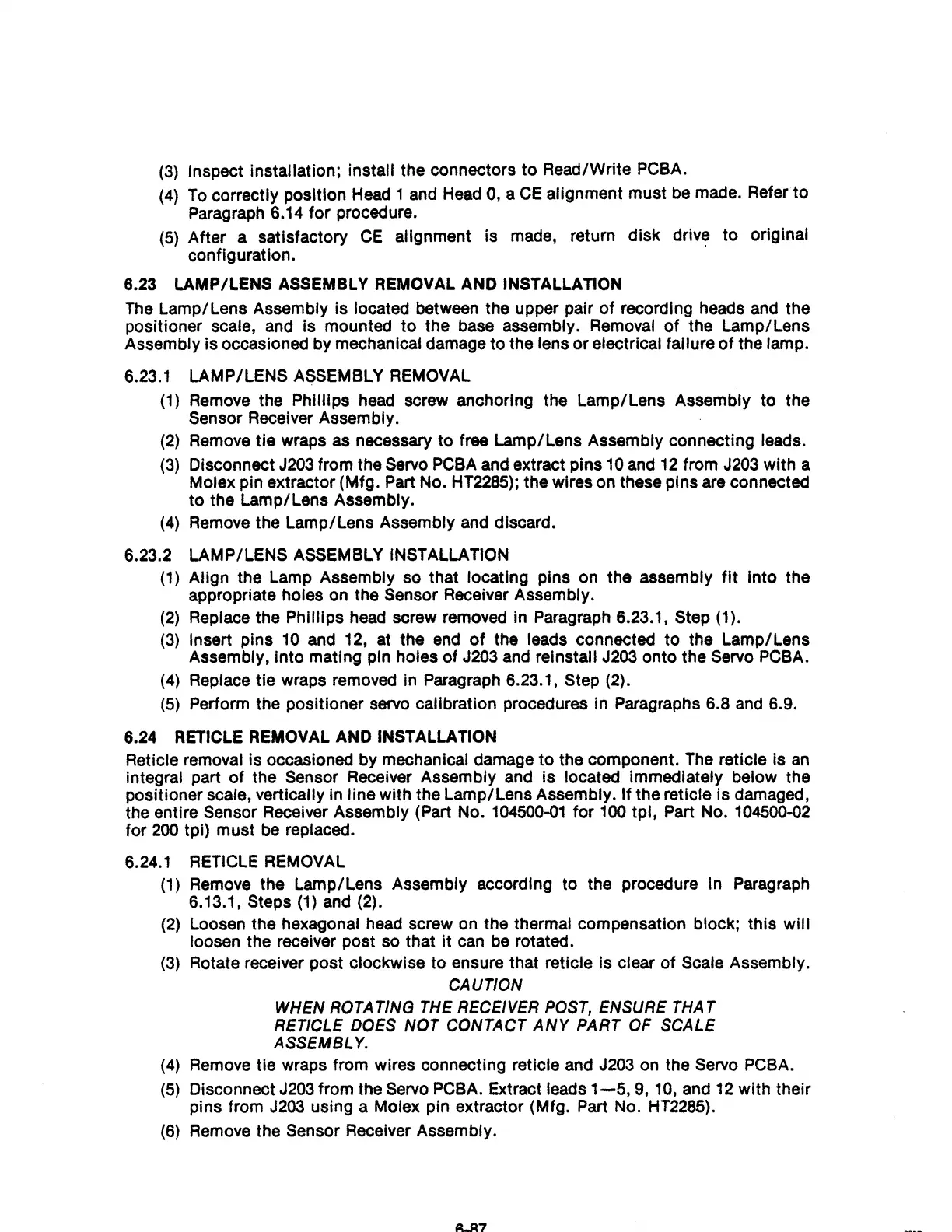 Perform the pOSitioner servo calibration procedures in Paragraphs 6.8