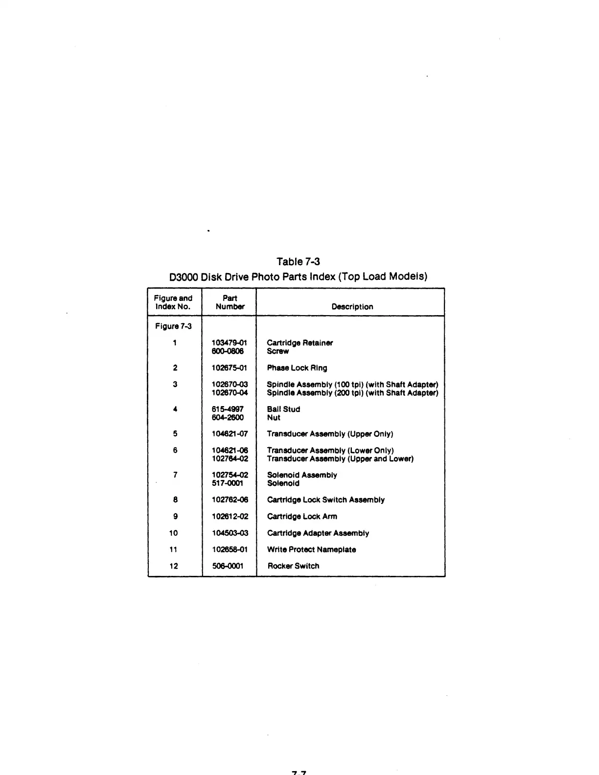 03000 Disk Drive Photo Parts Index (Top Load Models)