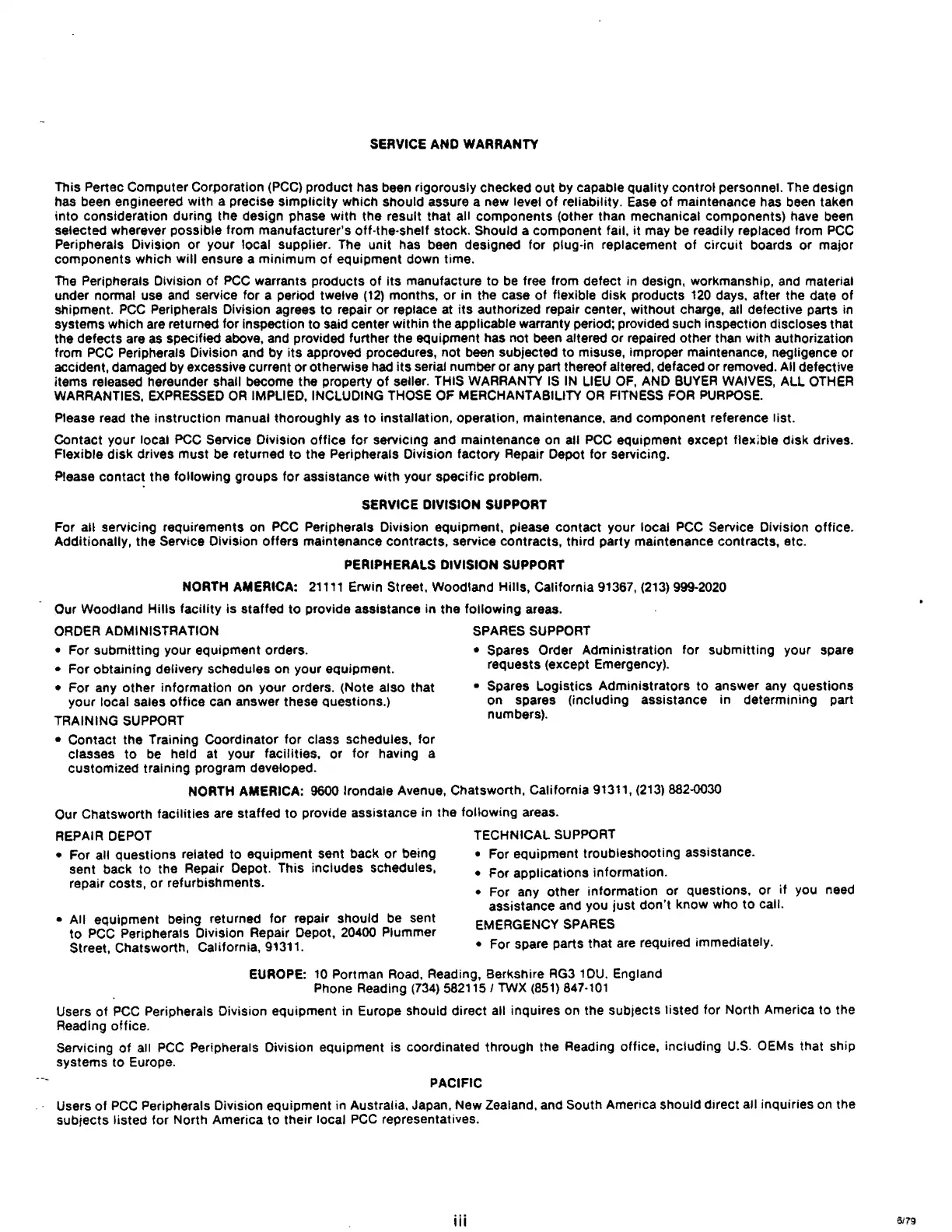 Peripherals Division equipment, please contact your local PeC Service Division office.