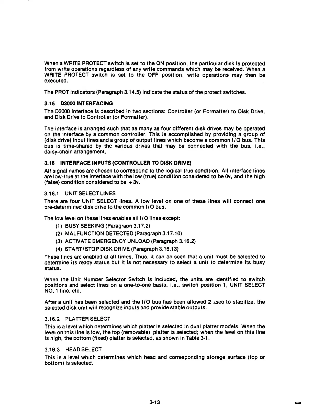 The 03000 Interface is described in two sections: Controller (or Formatter) to Disk Drive,
