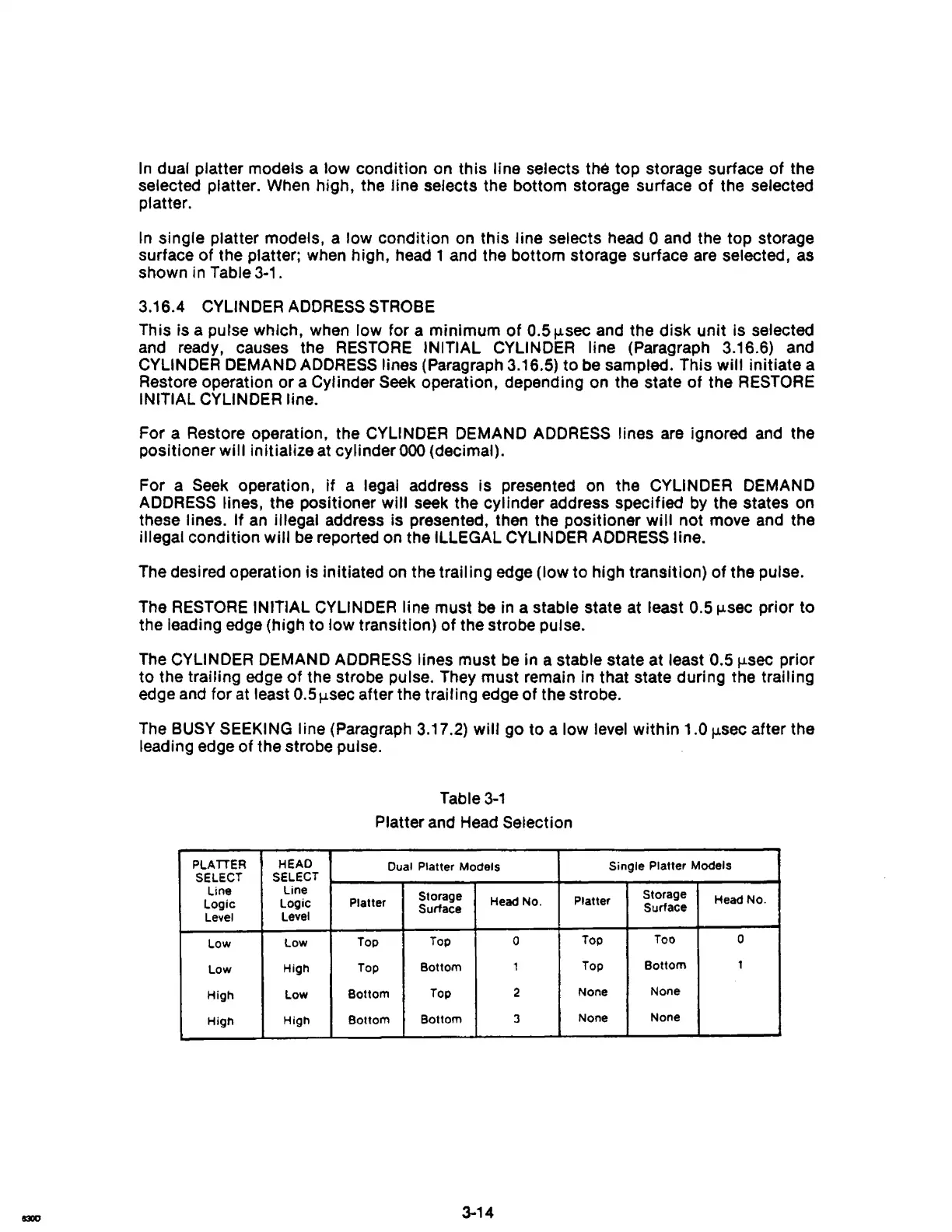 selected platter. When high, the line selects the bottom storage surface of the selected