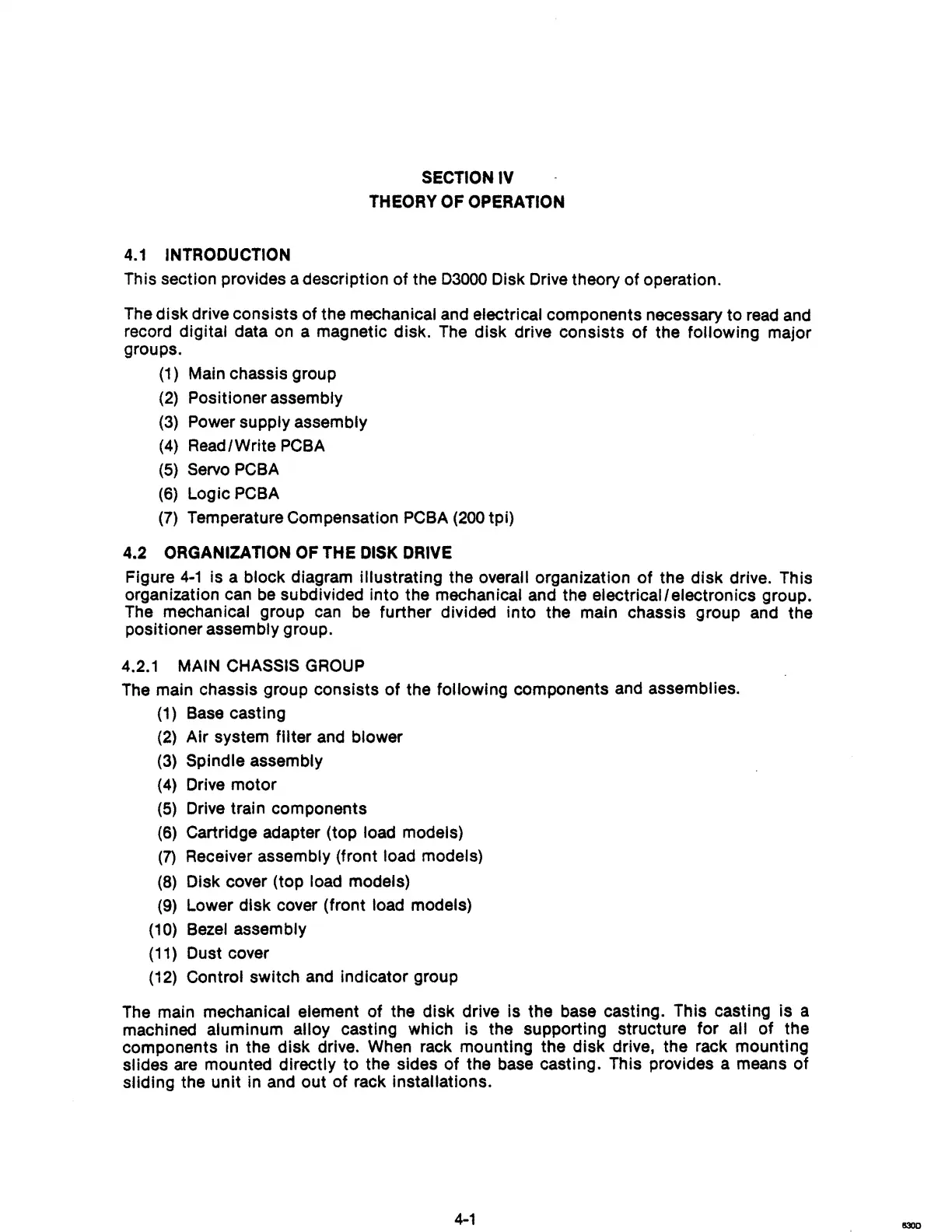 This section provides a description of the 03000 Disk Drive theory of operation.