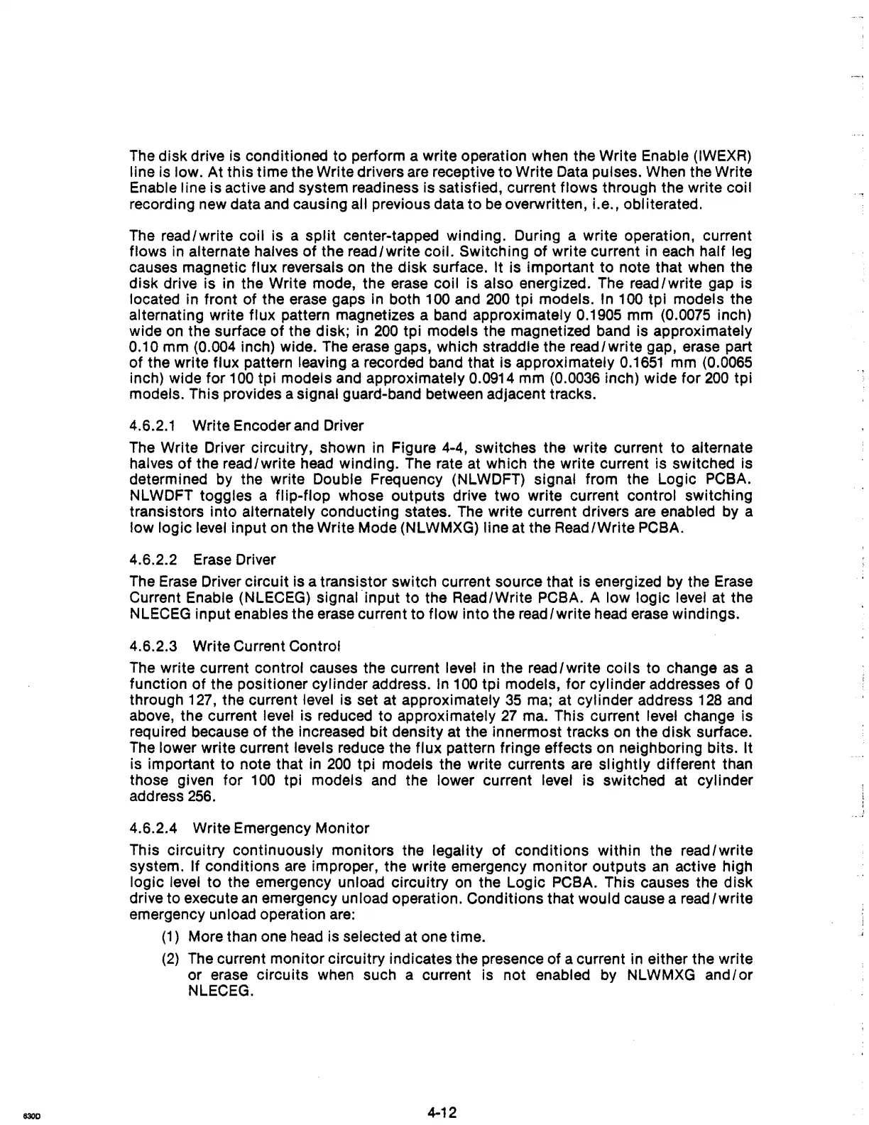 disk drive is in the Write mode, the erase coil is also energized. The read/write