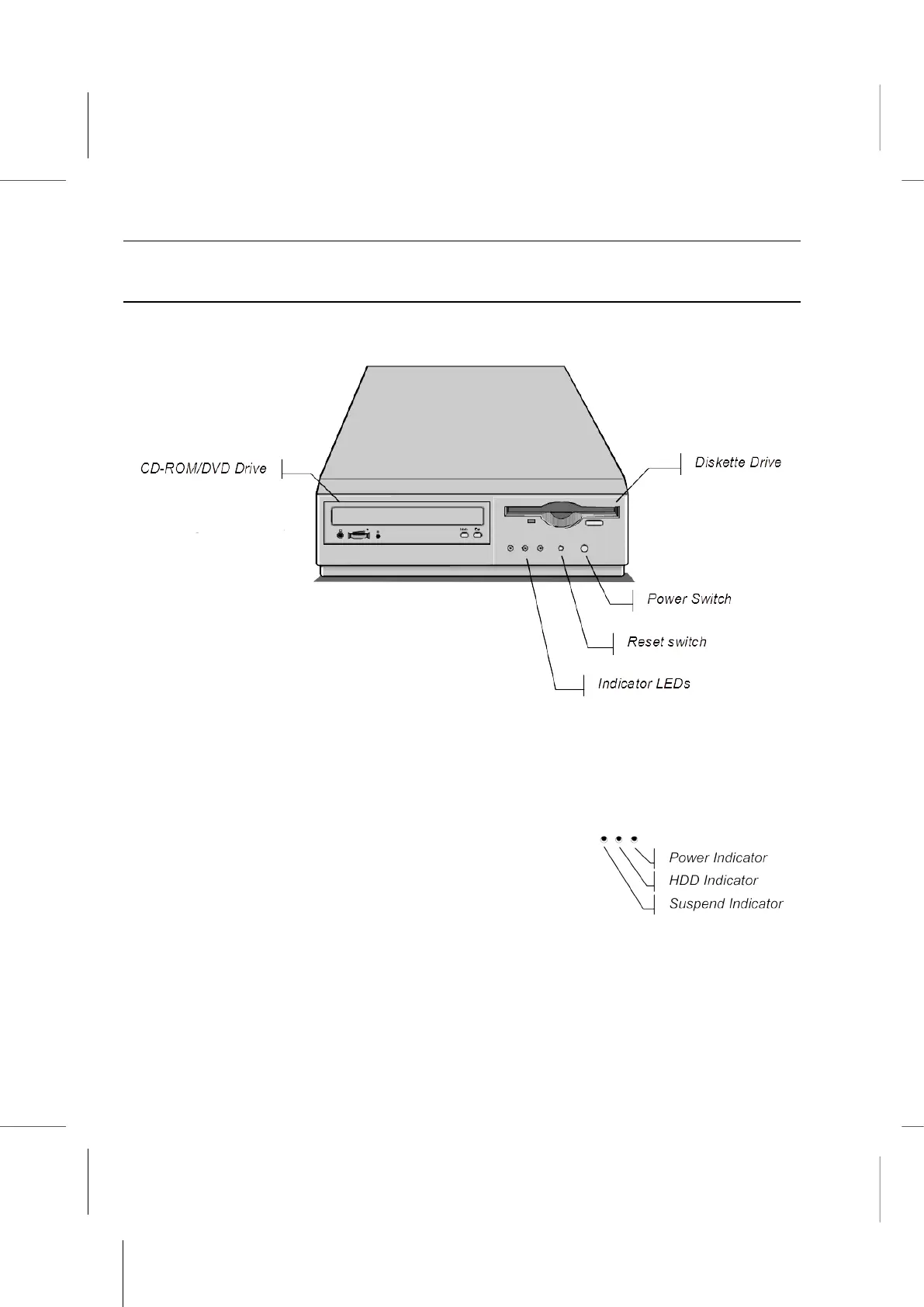 Diskette Drive – The diskette drive, on the right side of the front panel, can read