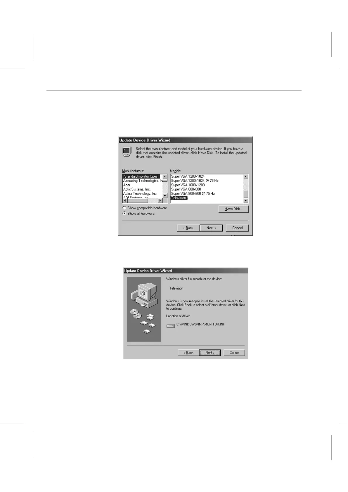 on Standard monitor types in the Manufacturers list and then click on Television or