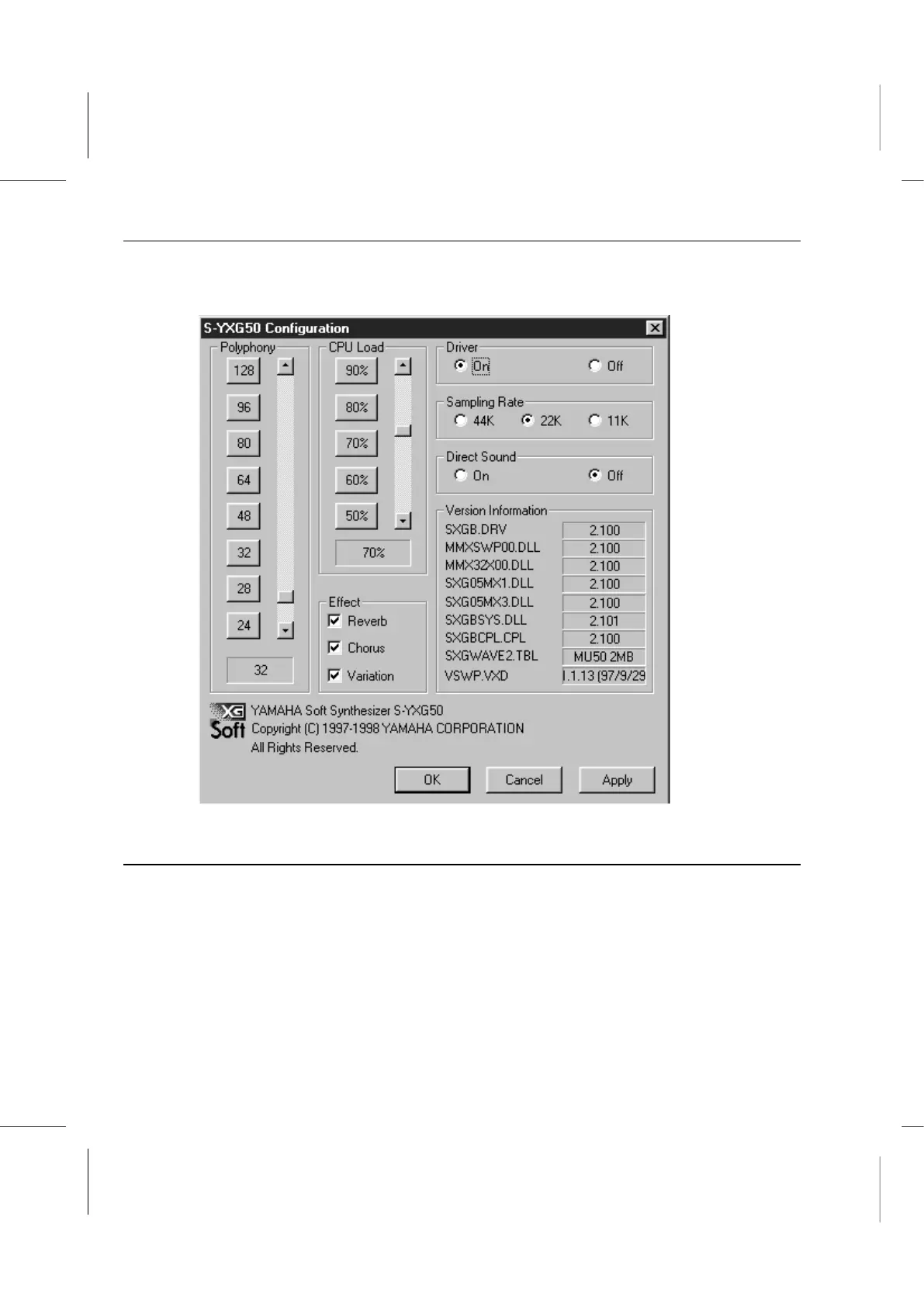 The S-YXG50 has two playback modes -- XG and TG300B -- and will startup in XG