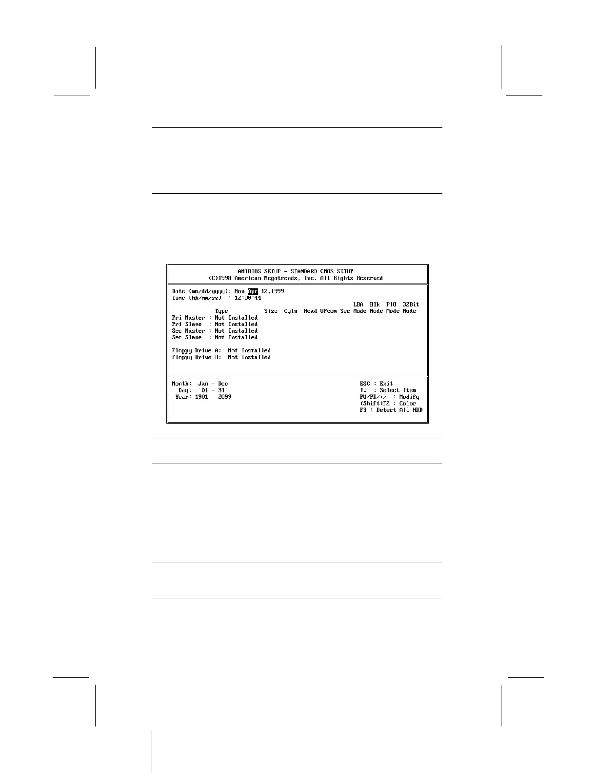 the IDE devices, and the diskette drives. If you press the F3 key,