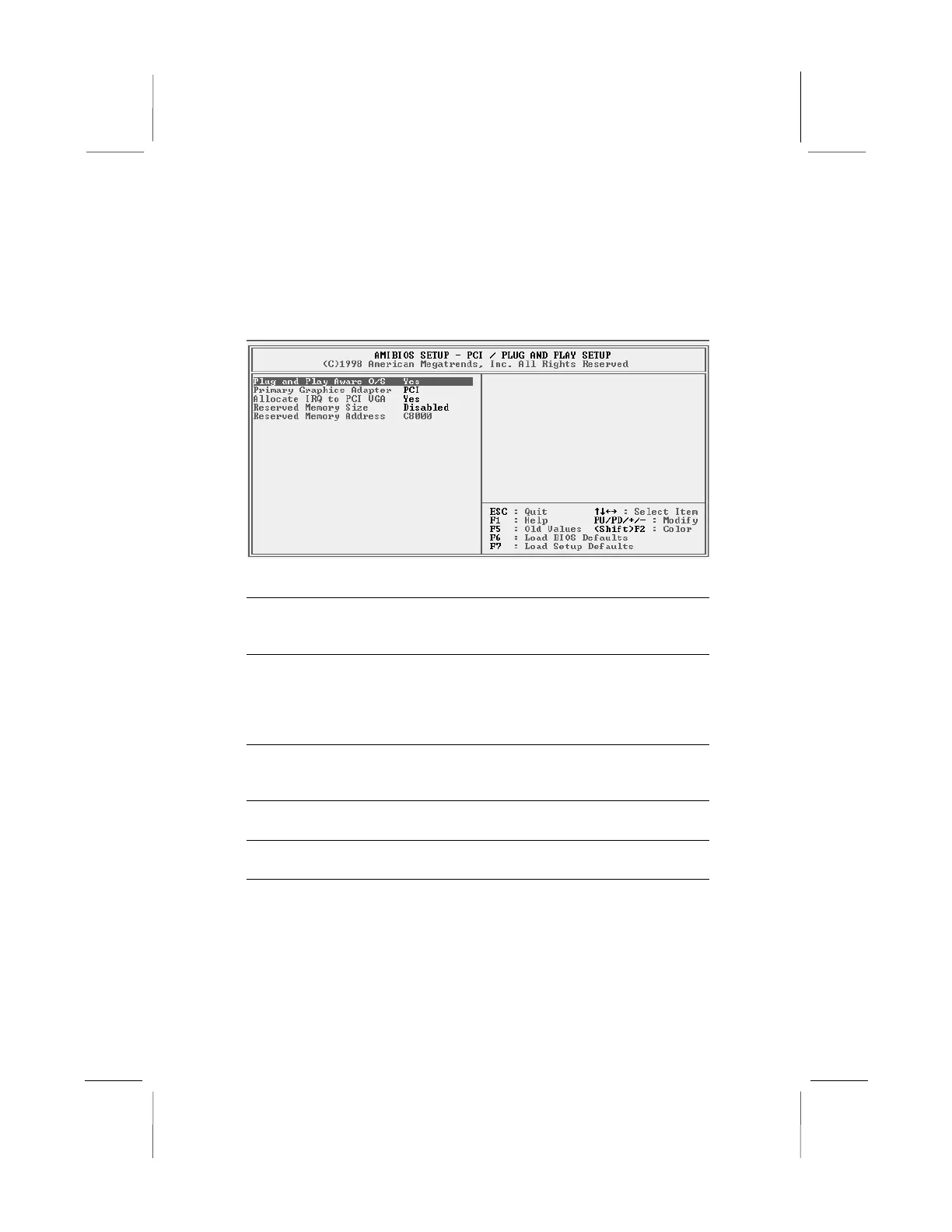 PCI / Plug and Play Setup Page
