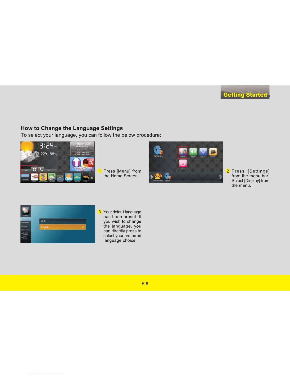PCCW eye2 - User Interfaces; Home Screen for Basic Mode; Home Screen for PCCW Service Mode; Status Icons