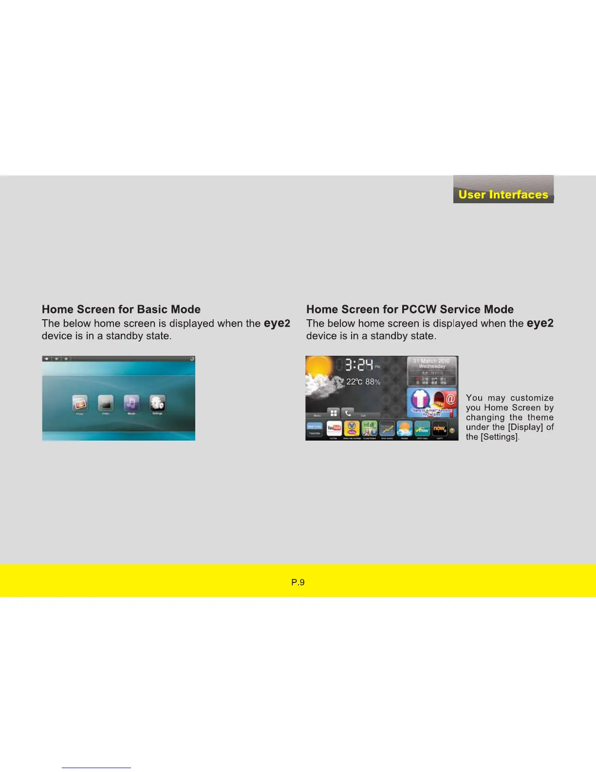PCCW eye2 - Home Screen for Basic Mode; Home Screen for PCCW Service Mode