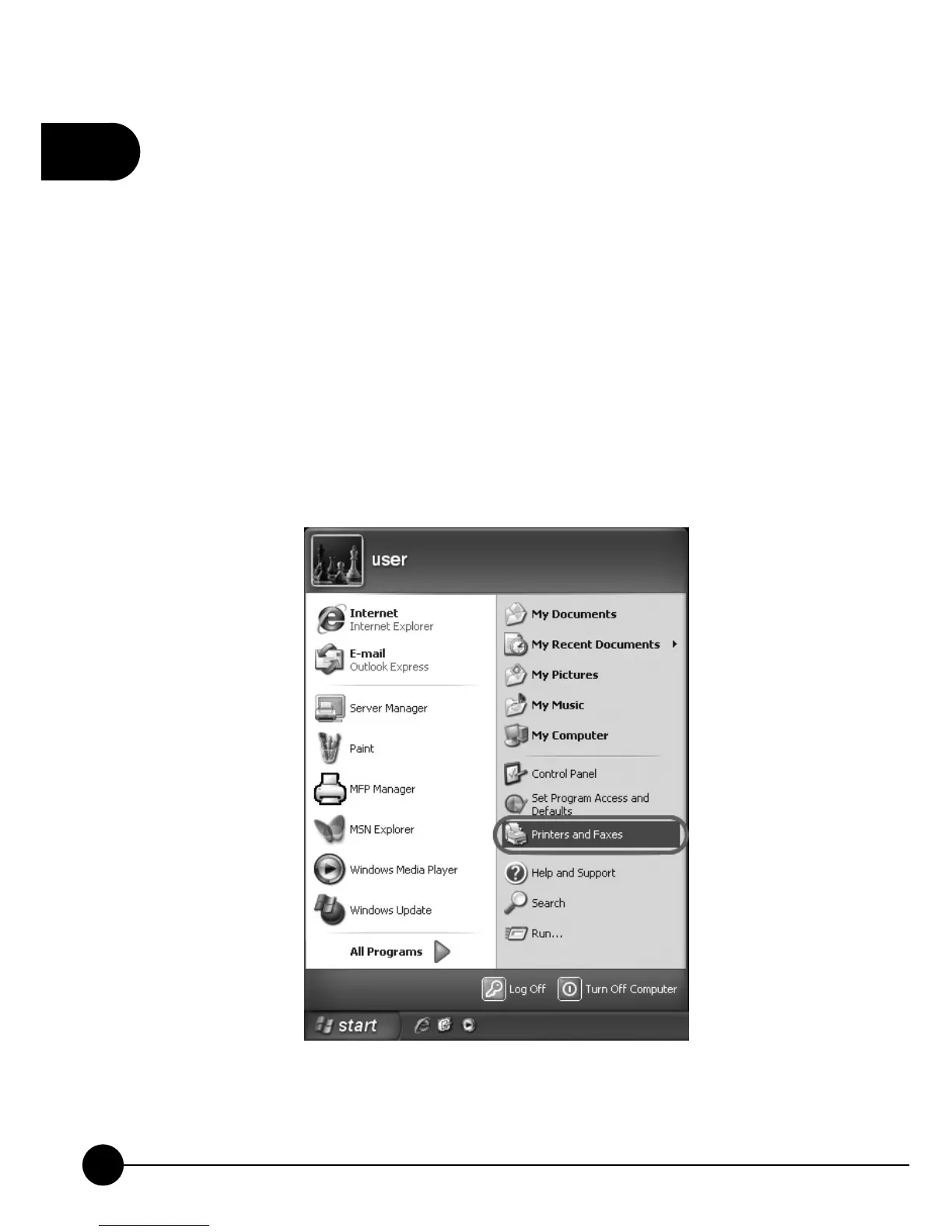 1.ClickņStartŇ, chooseņSettingsŇand selectņPrinters and FaxesŇ.
