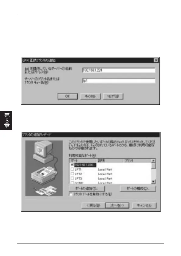 4.「LPR 互換プリンタの追加」ウインドウが表示されますので「lpd
